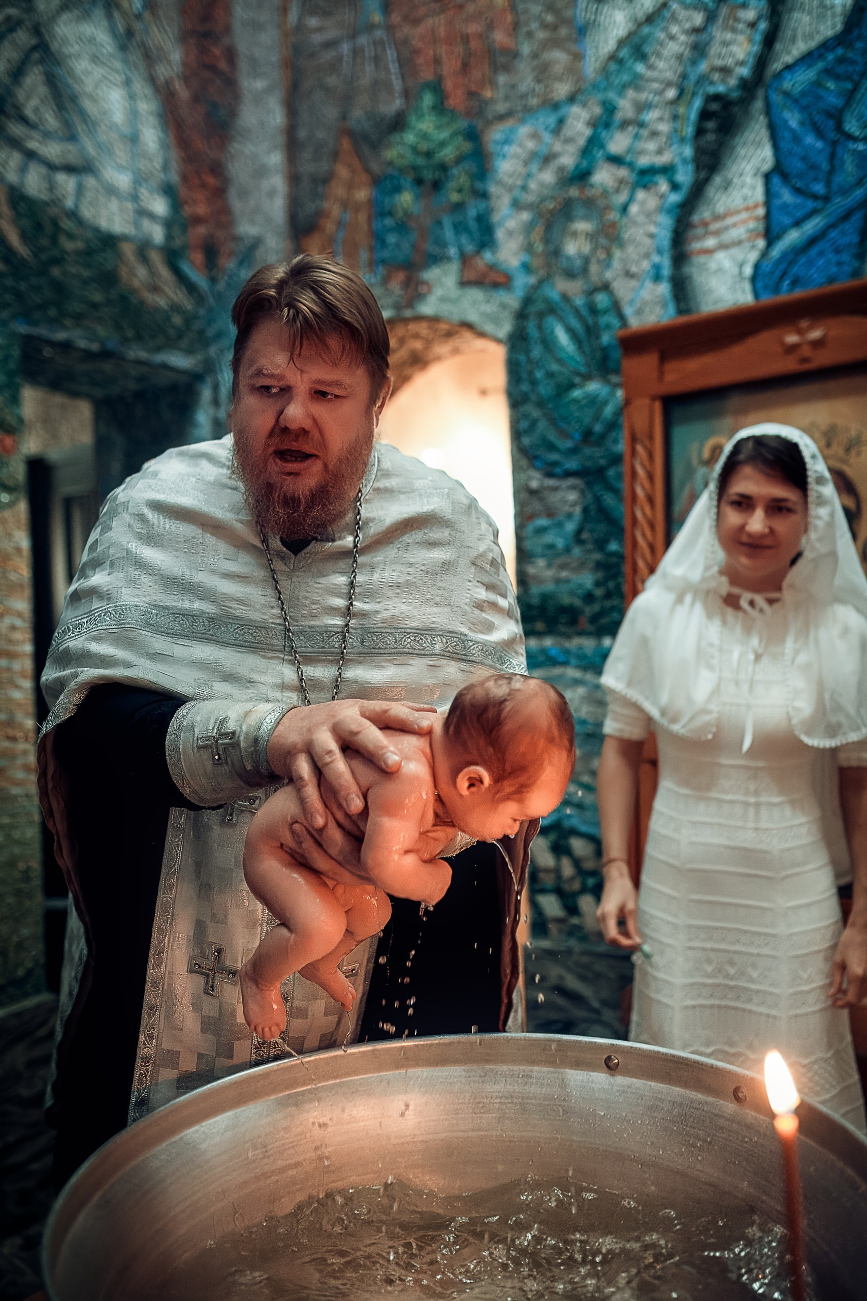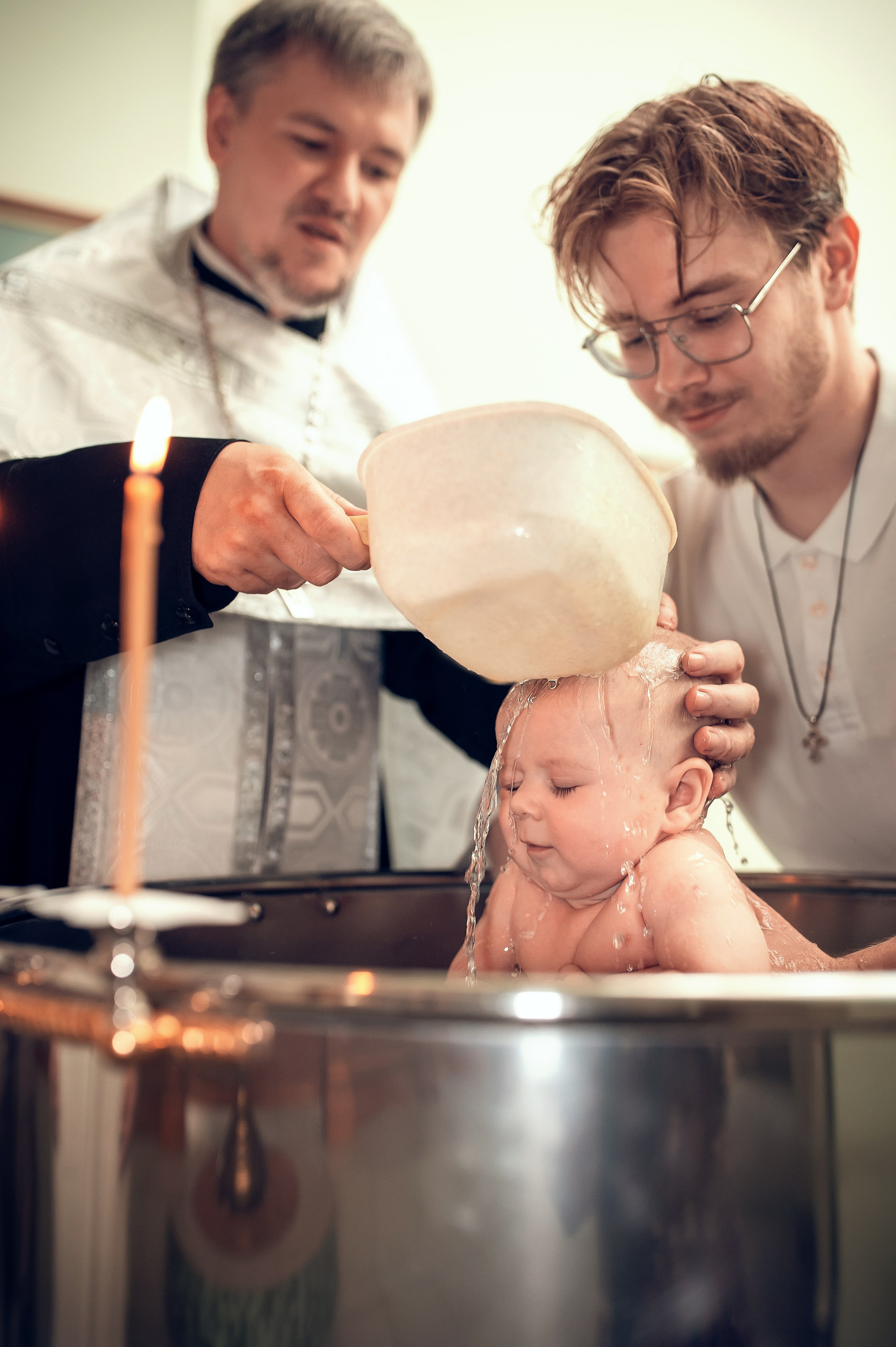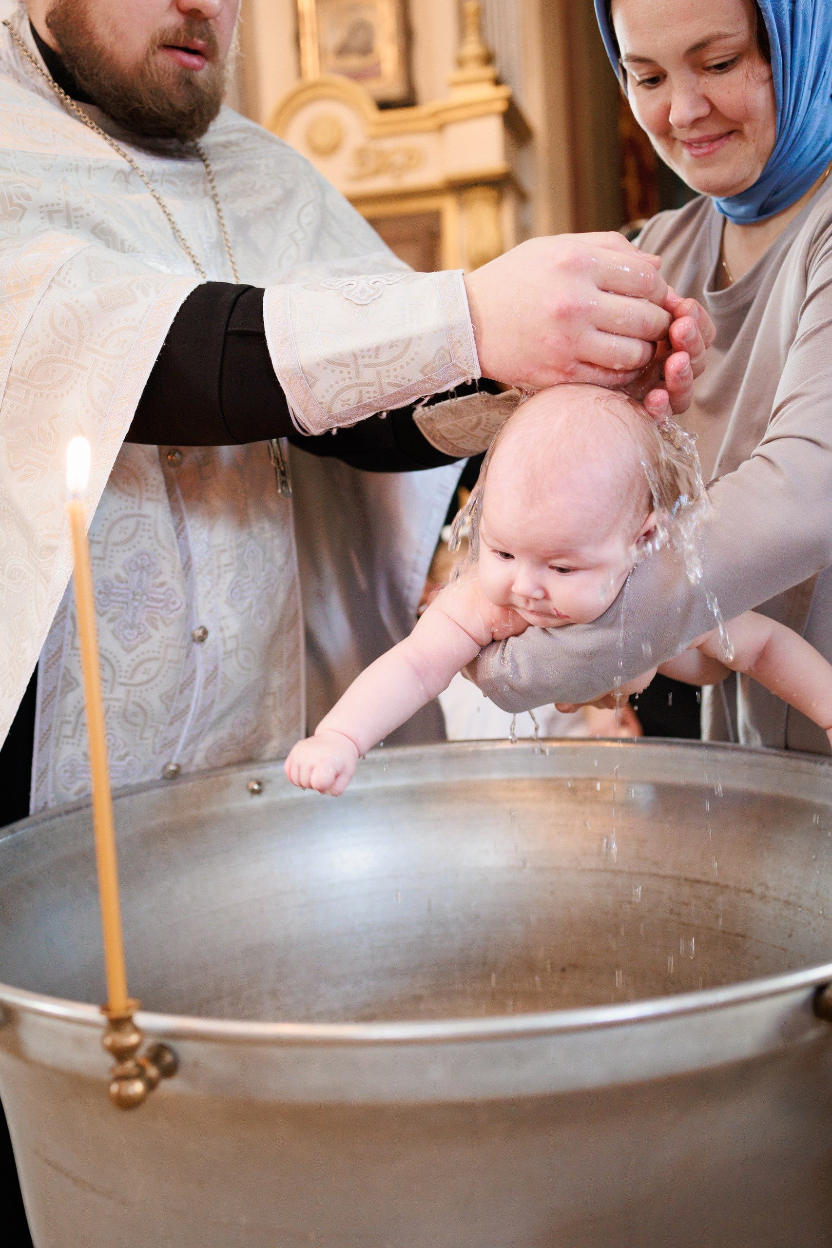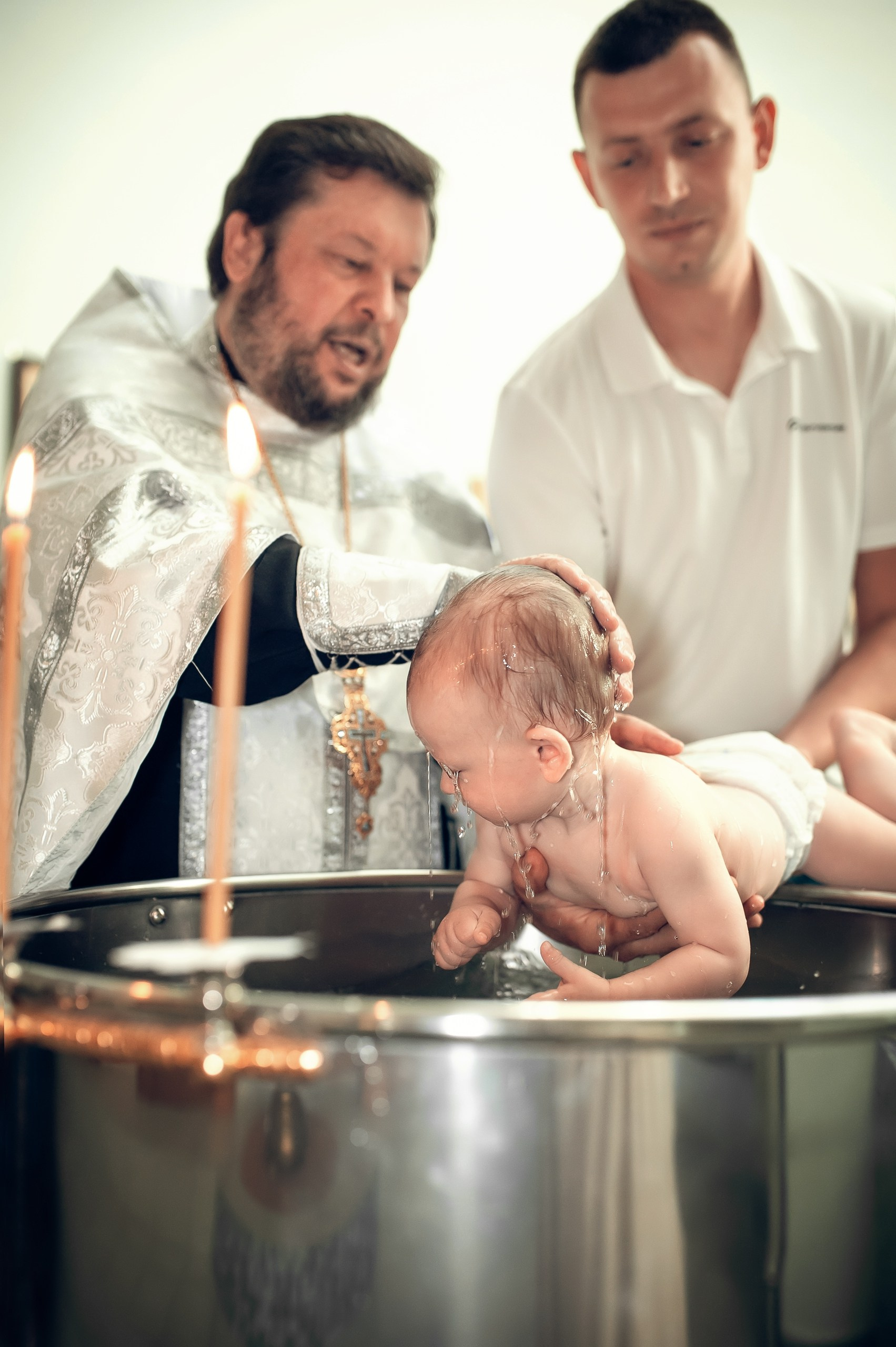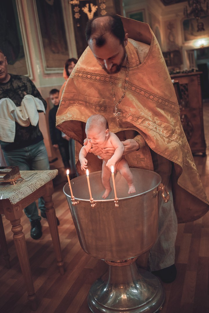Фотографии момента погружения в купель (Таинство крещения). Moscow_CPC
