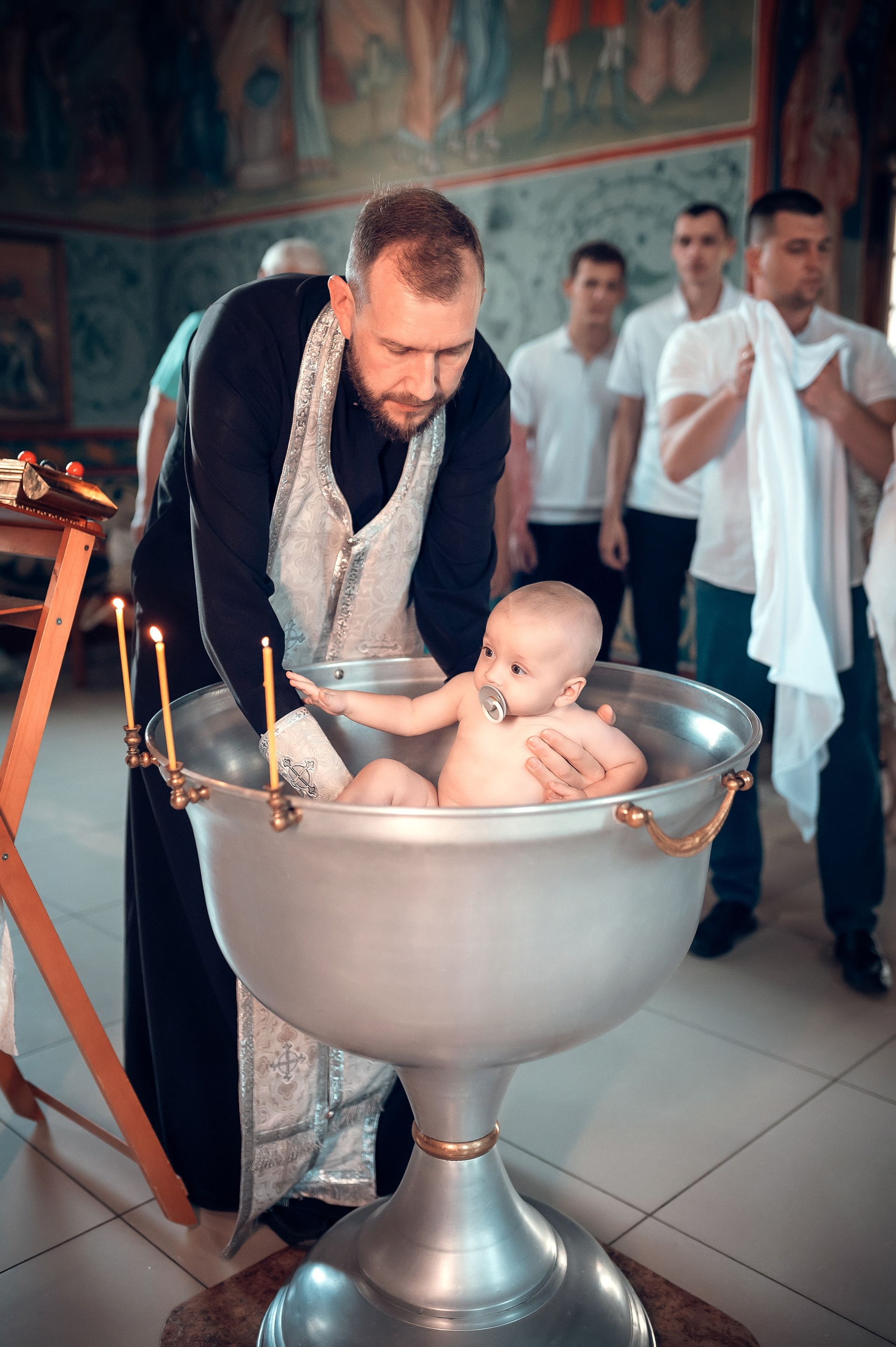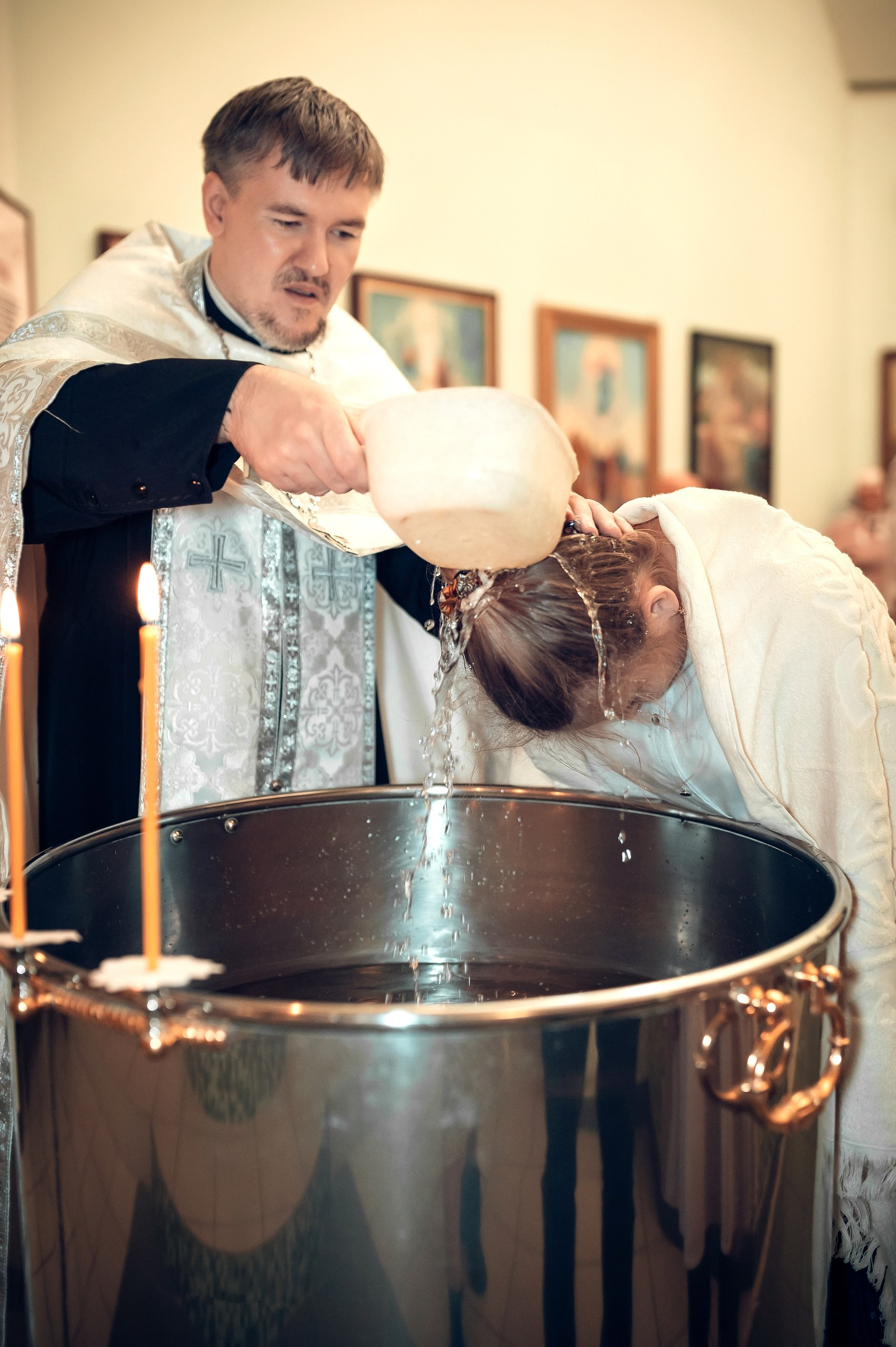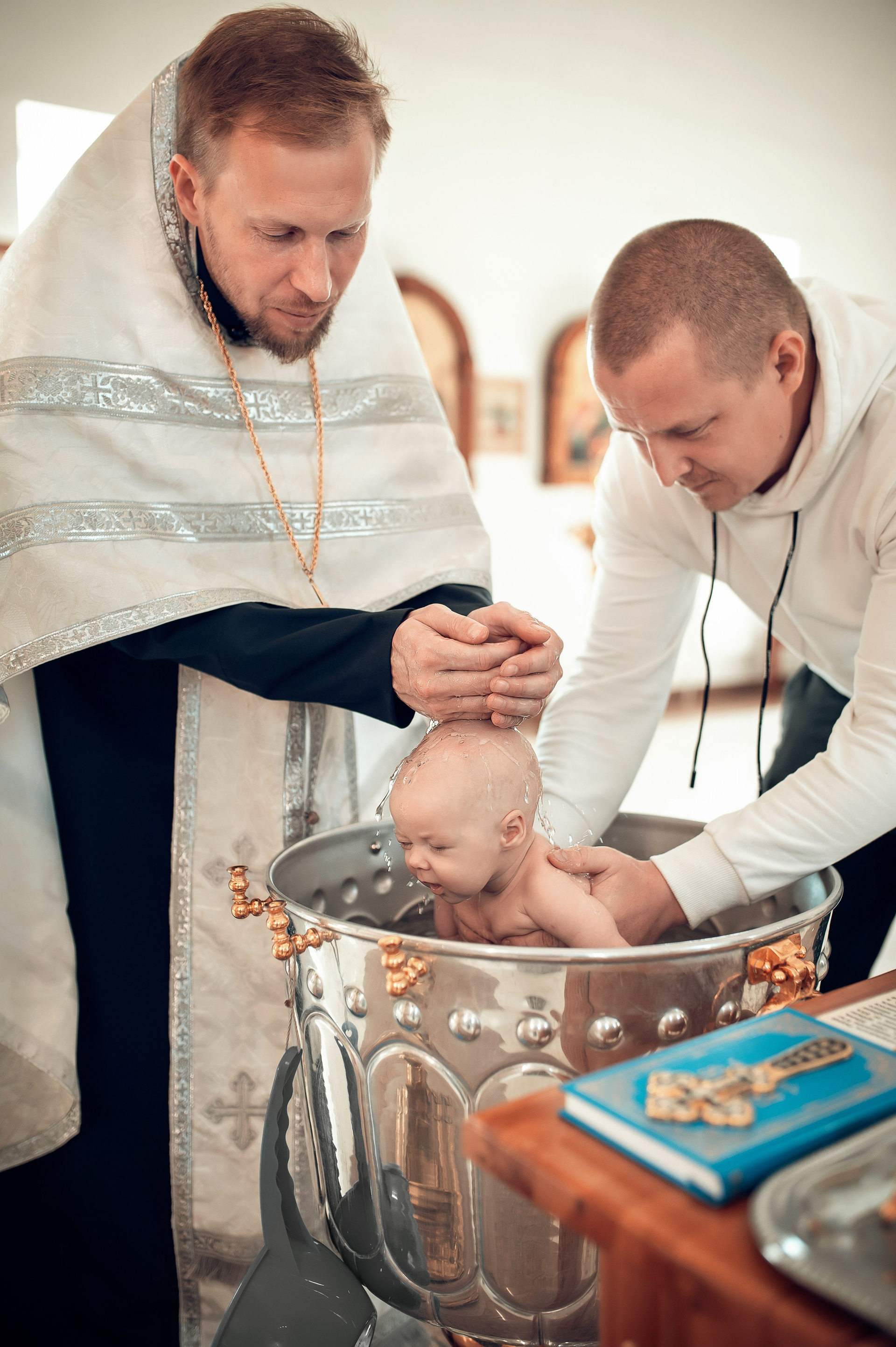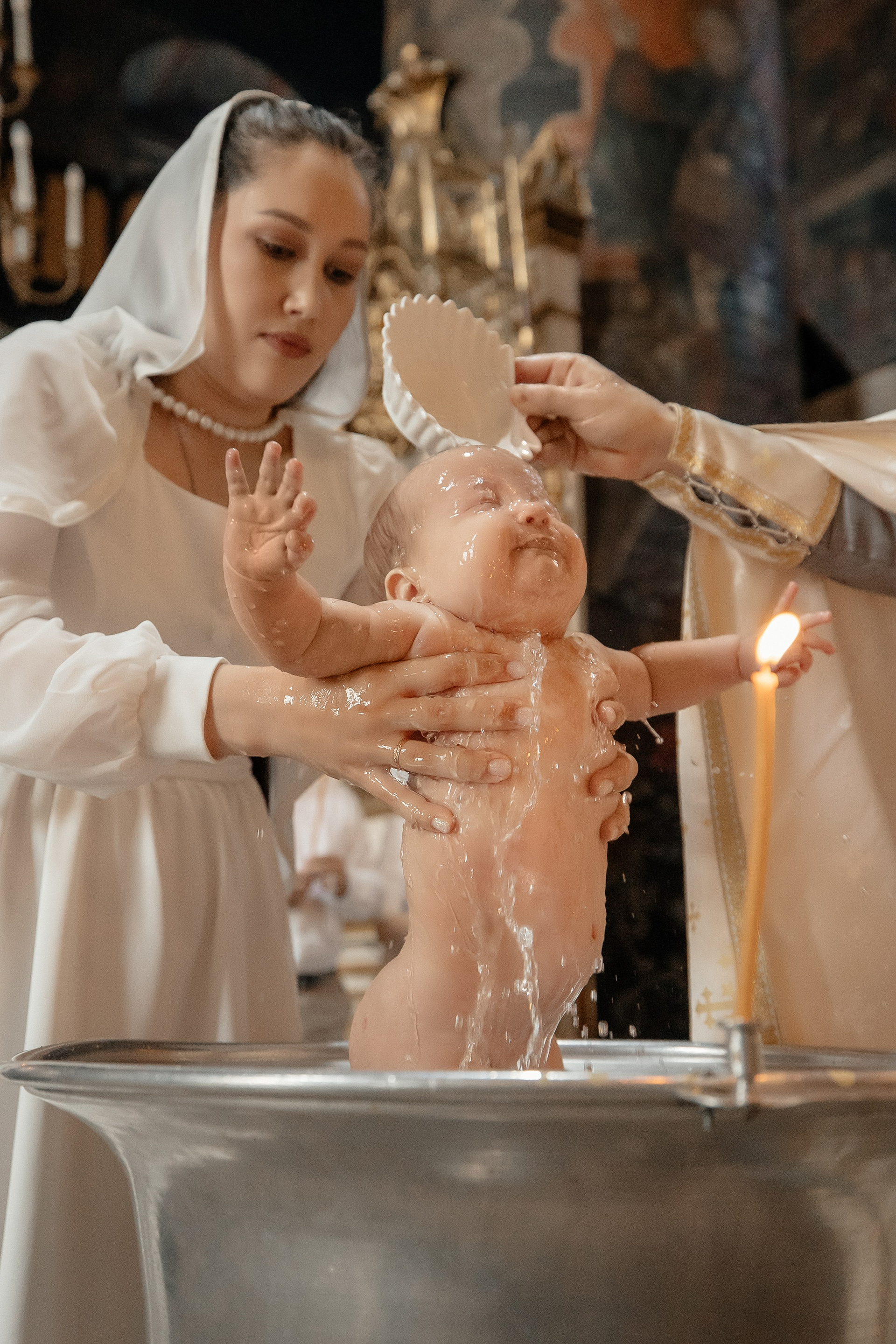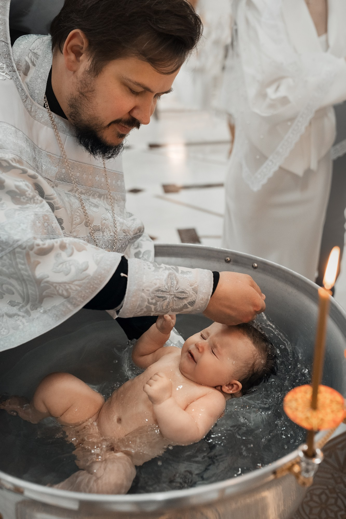 Фотографии момента погружения в купель (Таинство крещения). Moscow_CPC