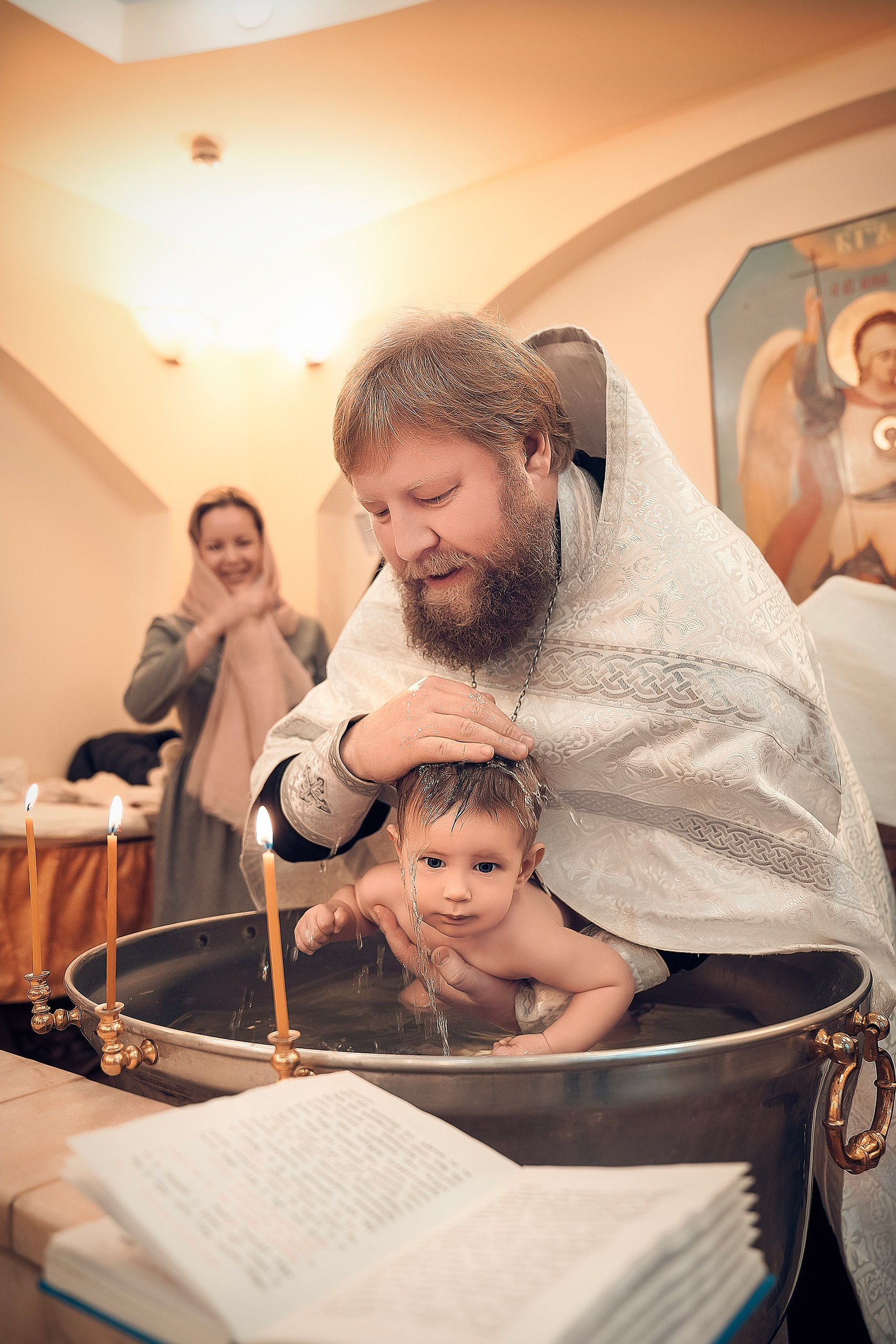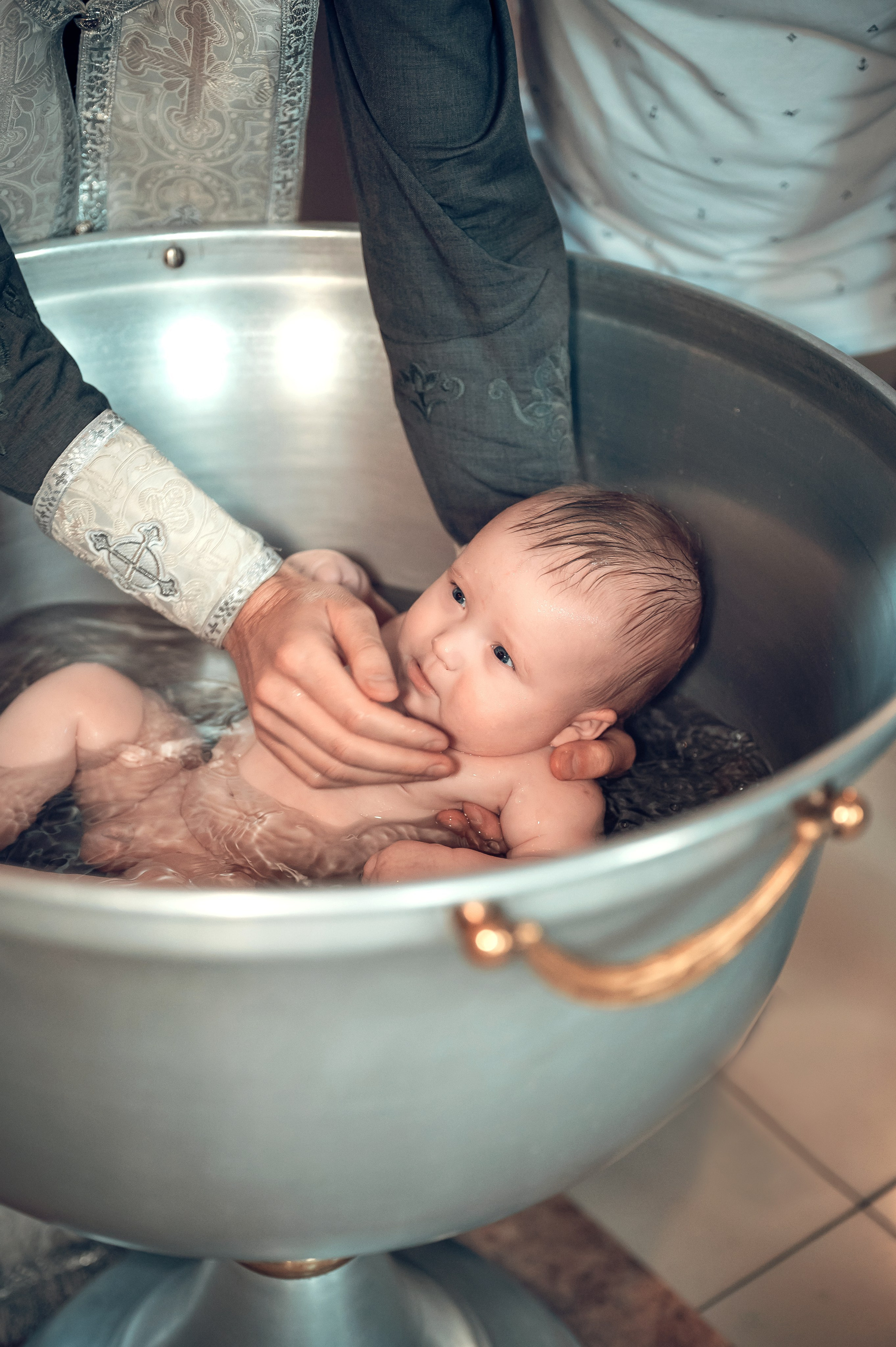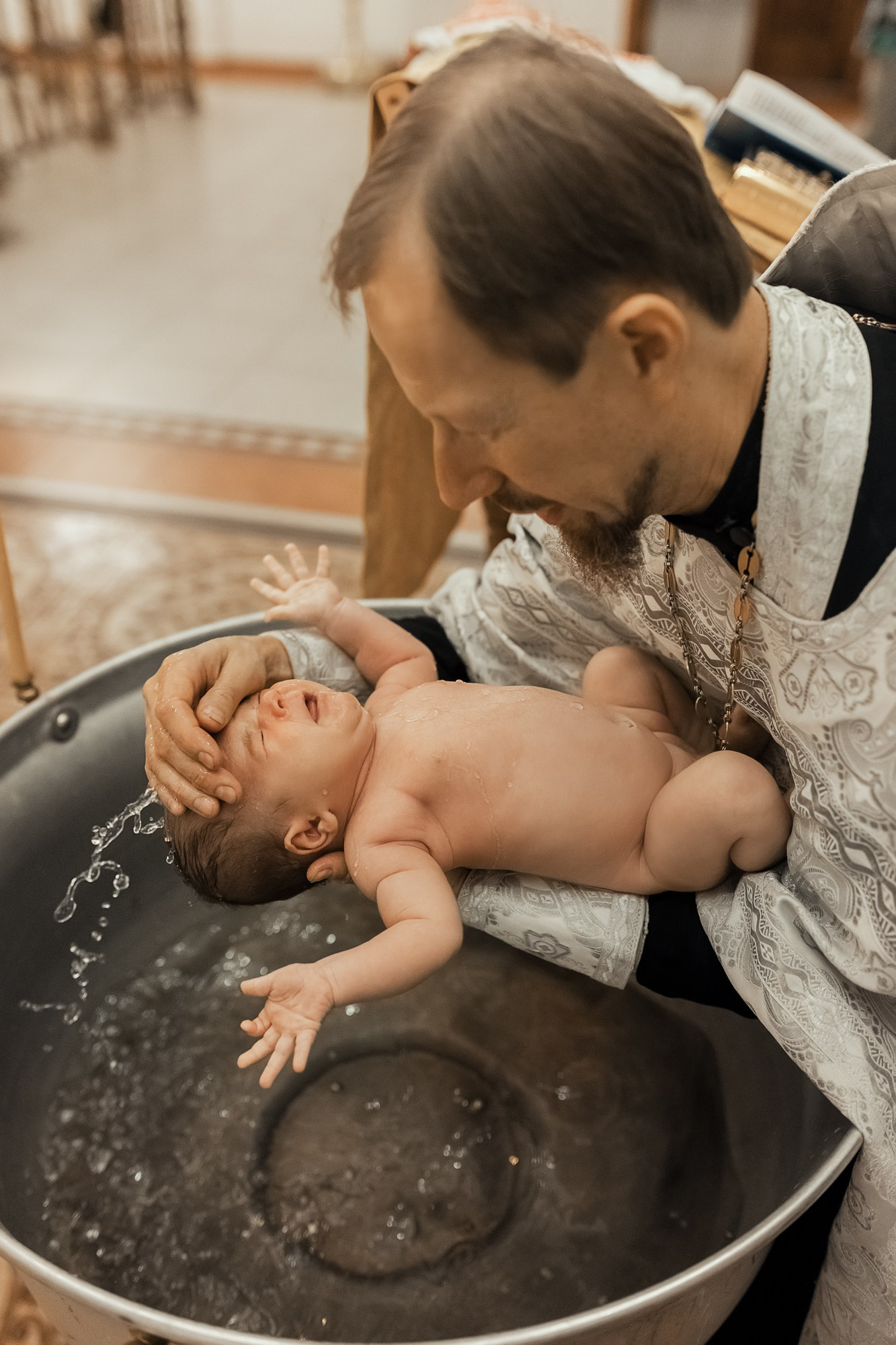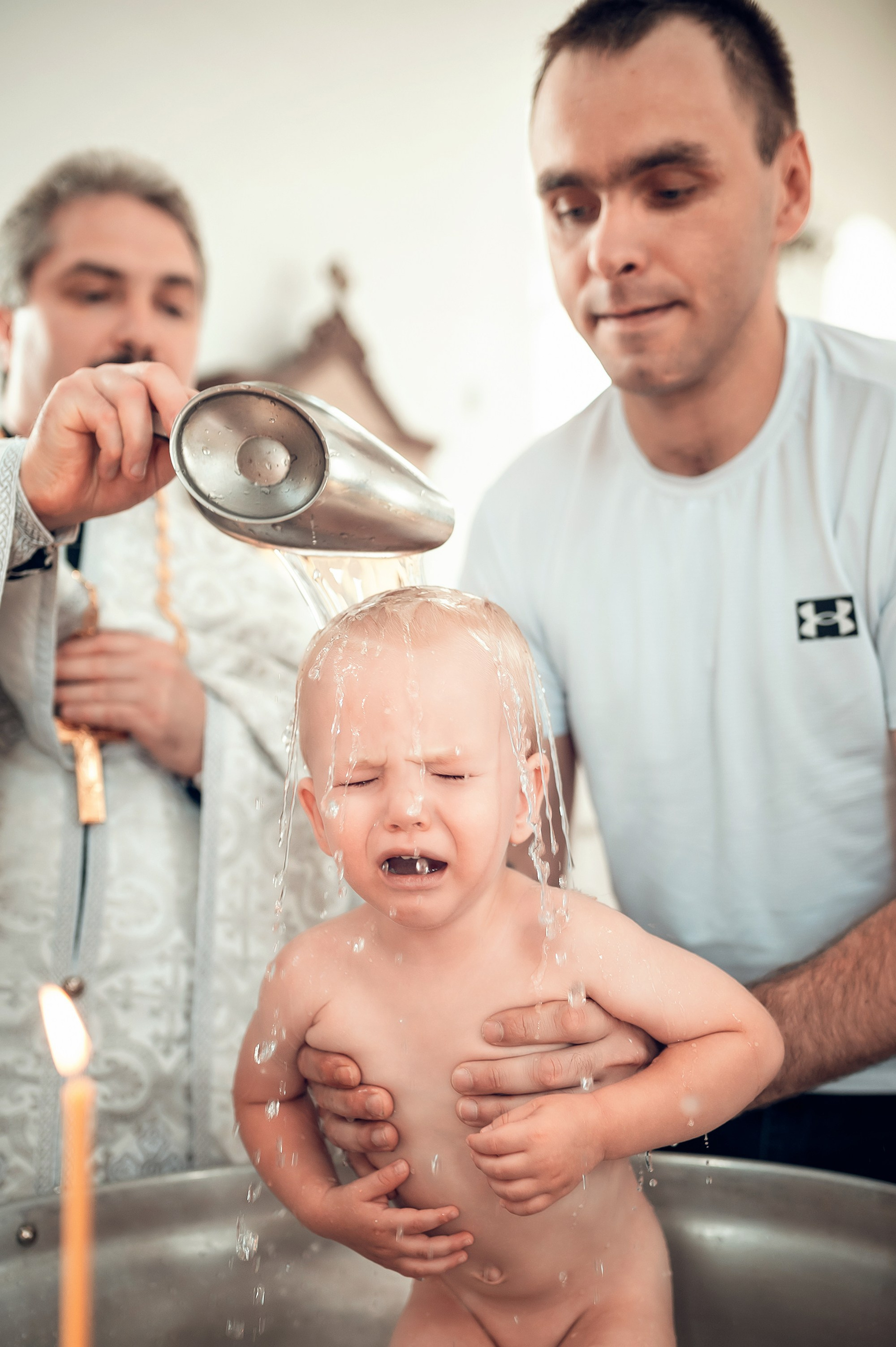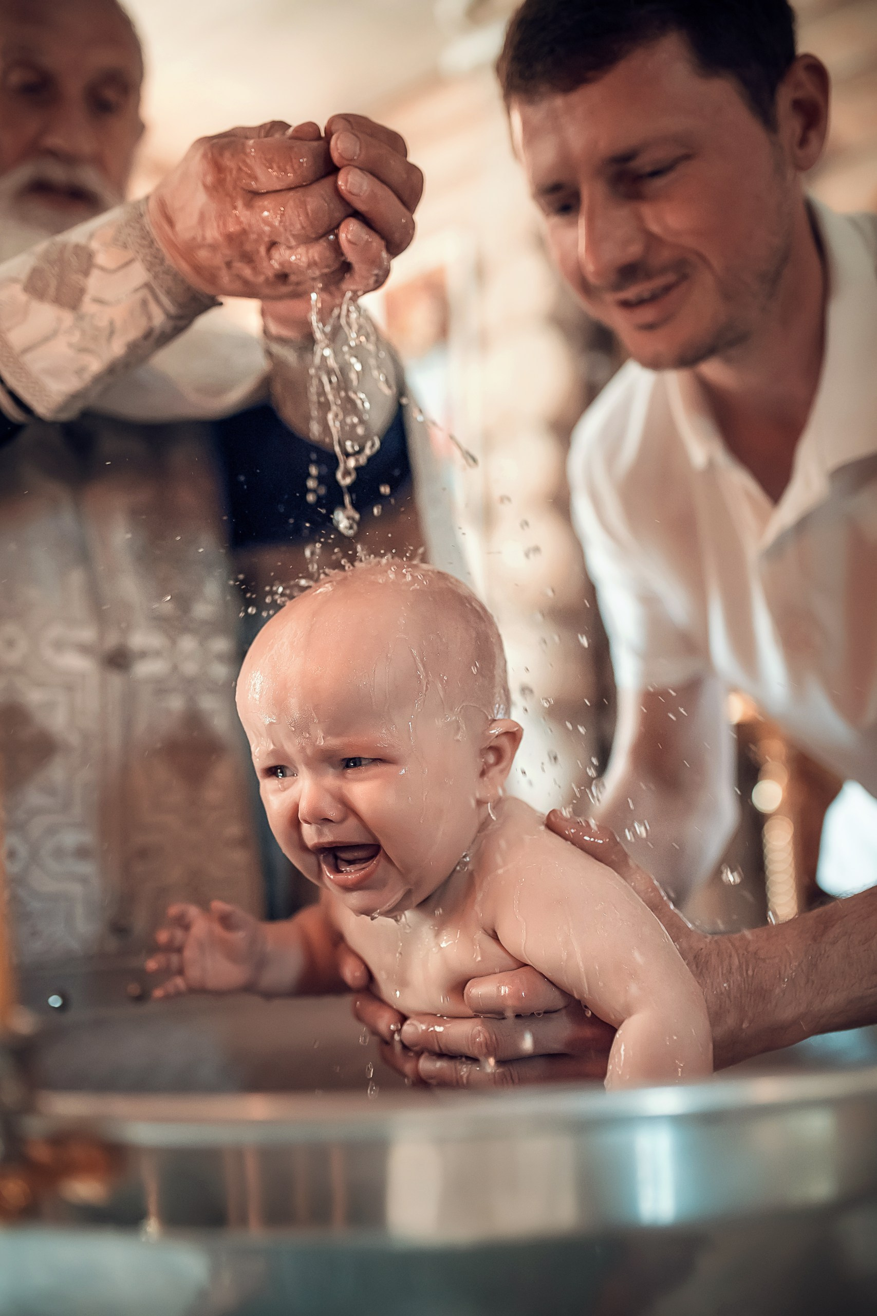 Фотографии момента погружения в купель (Таинство крещения). Moscow_CPC