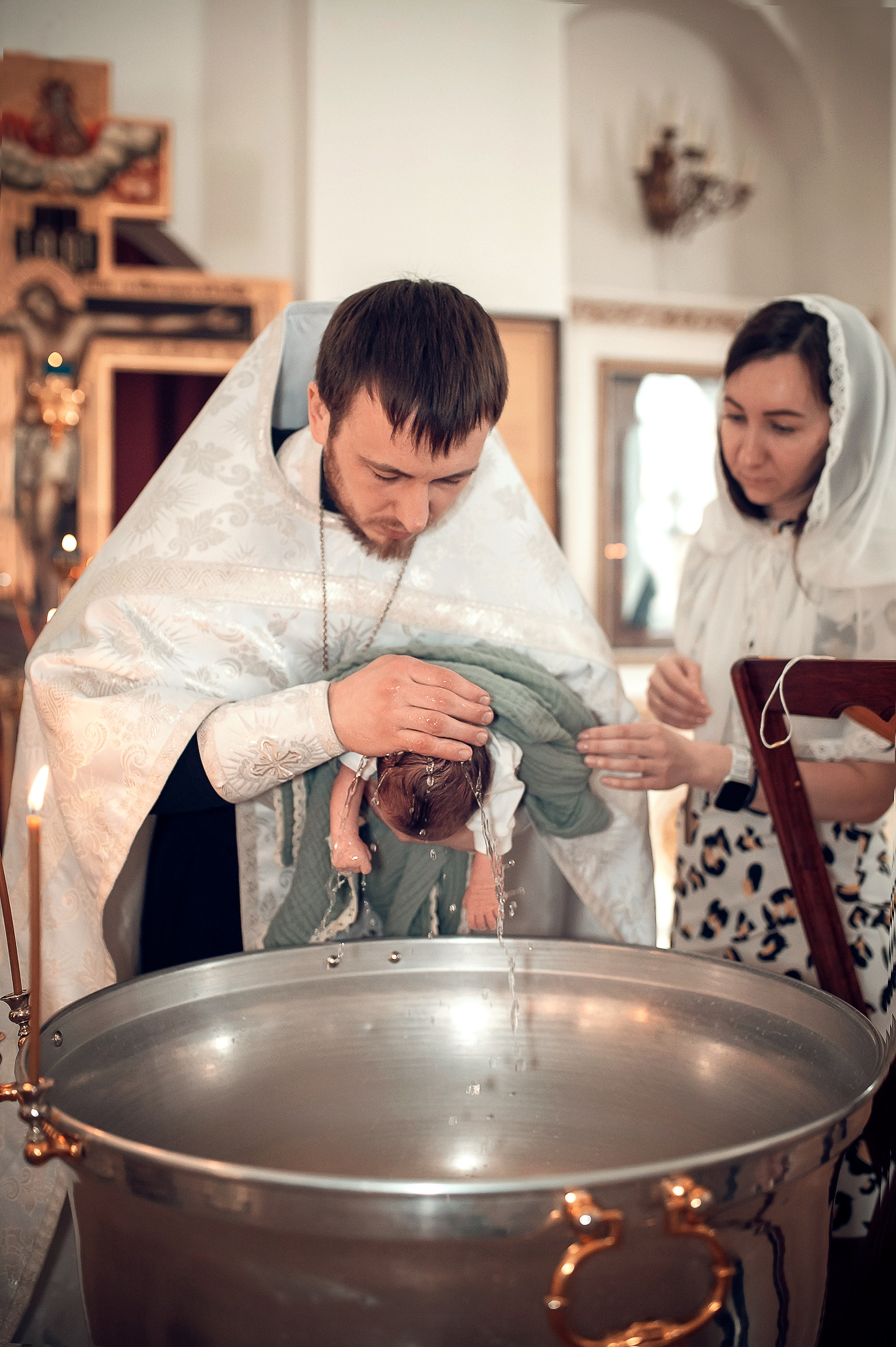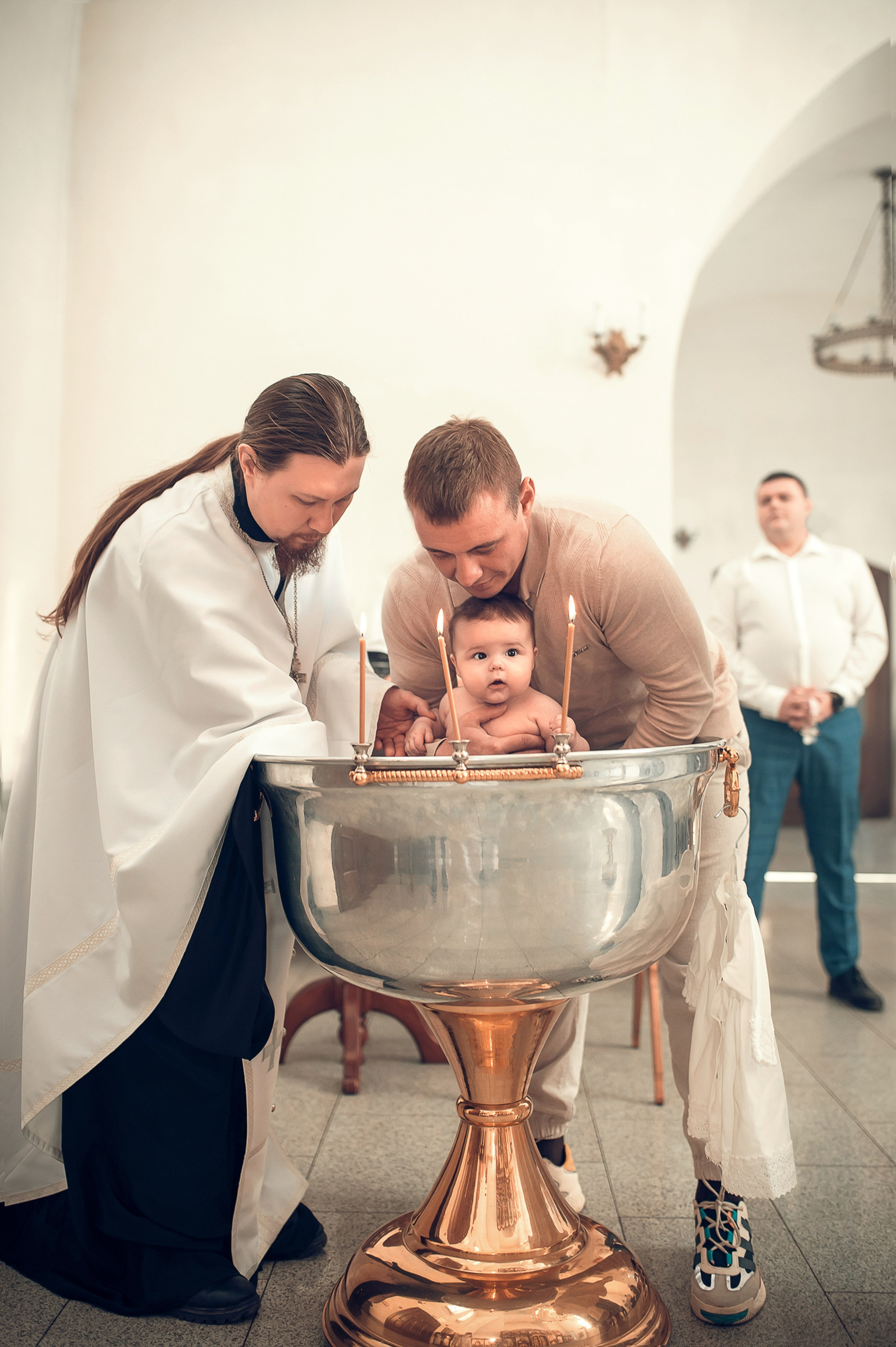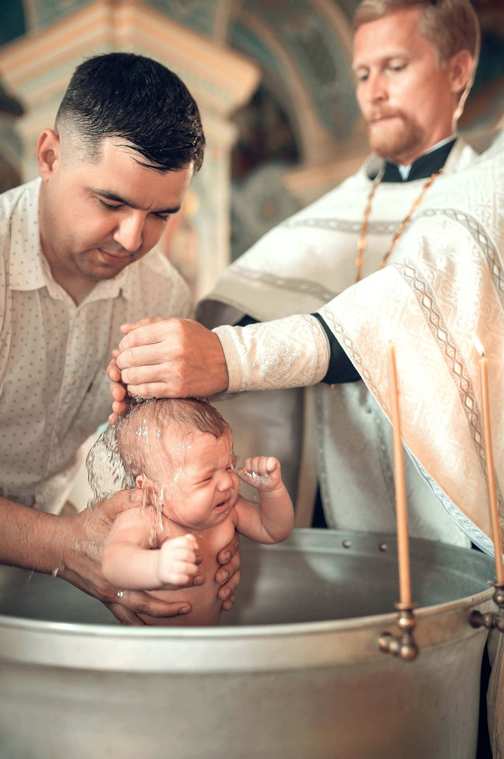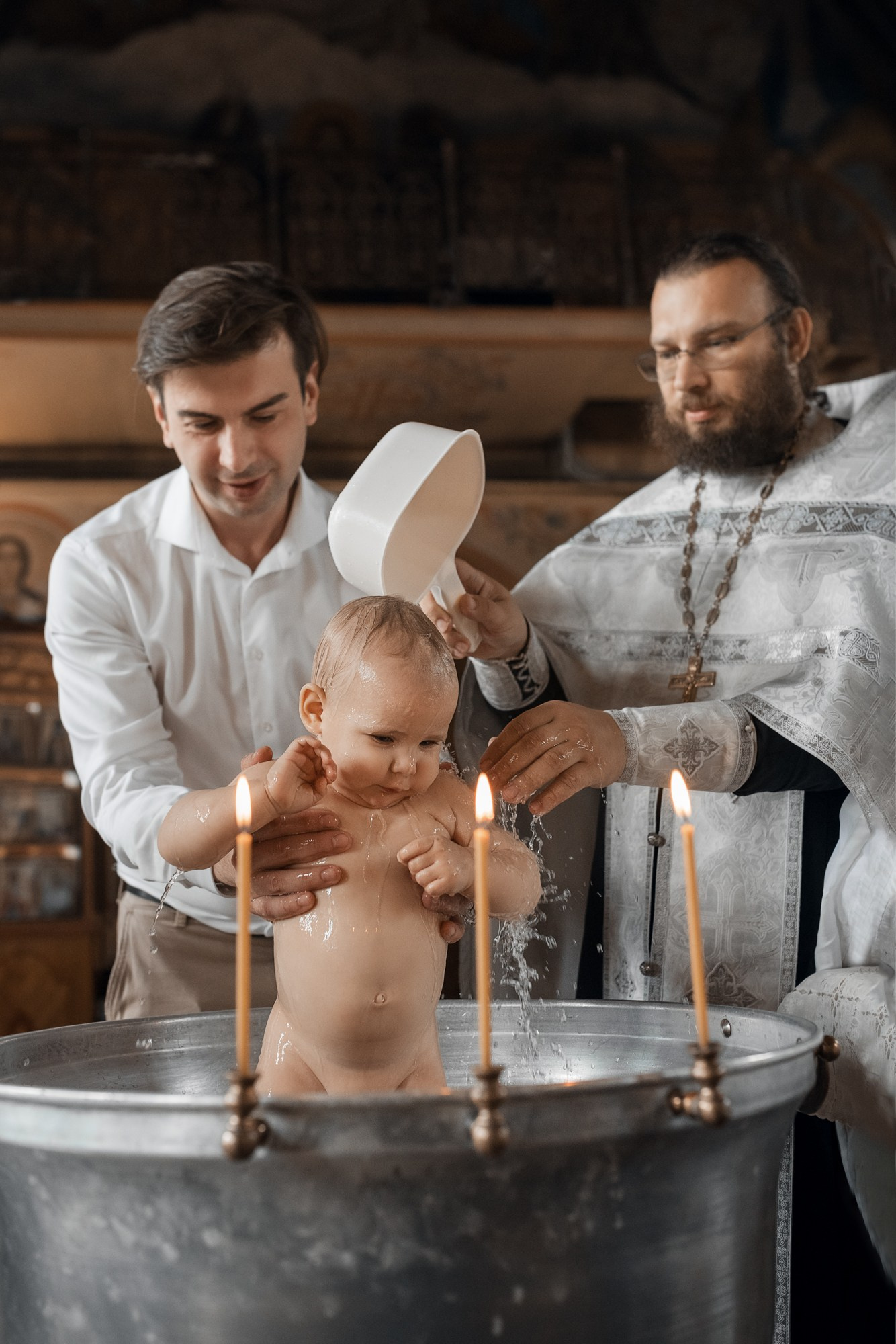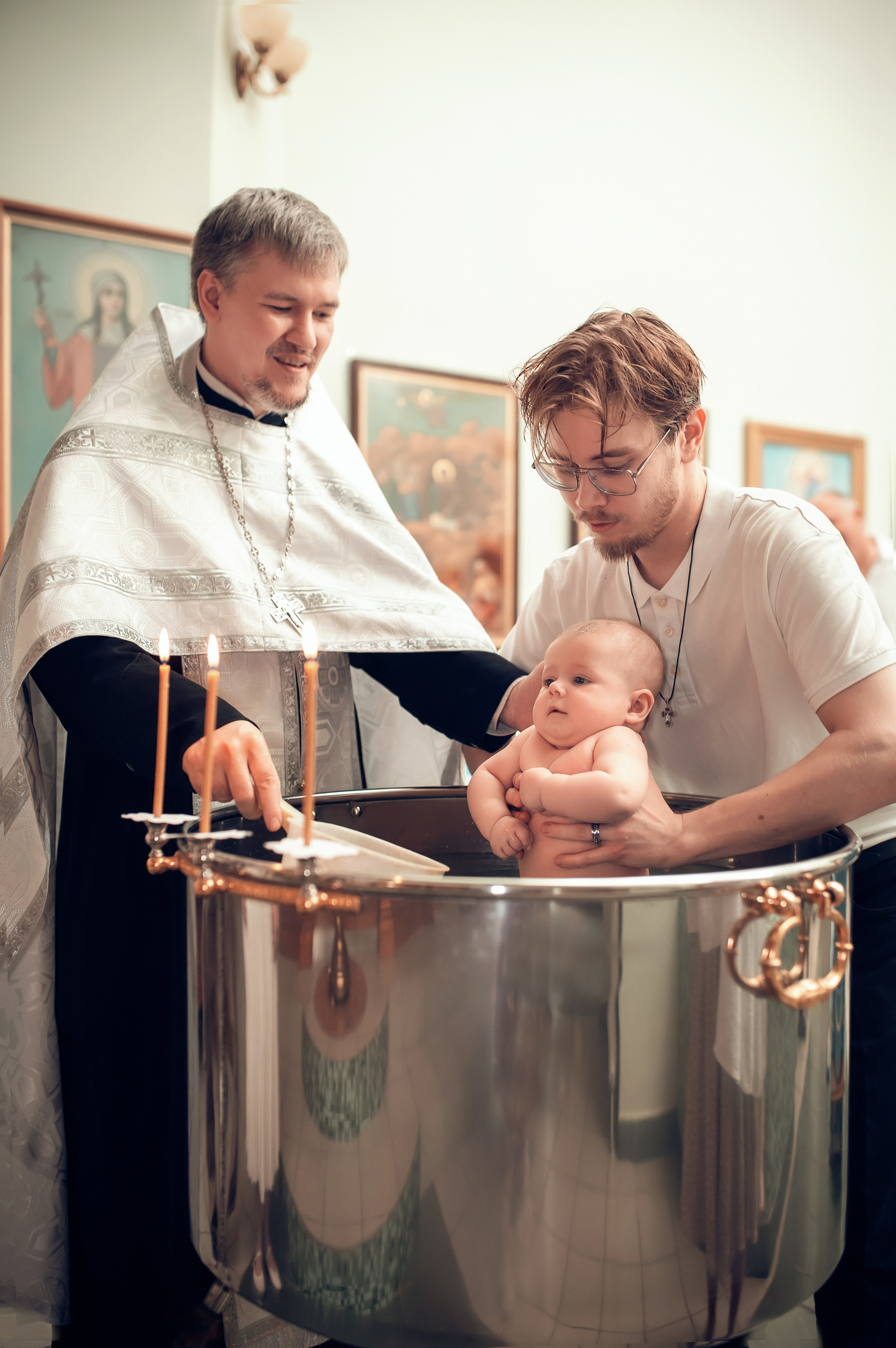 Фотографии момента погружения в купель (Таинство крещения). Moscow_CPC