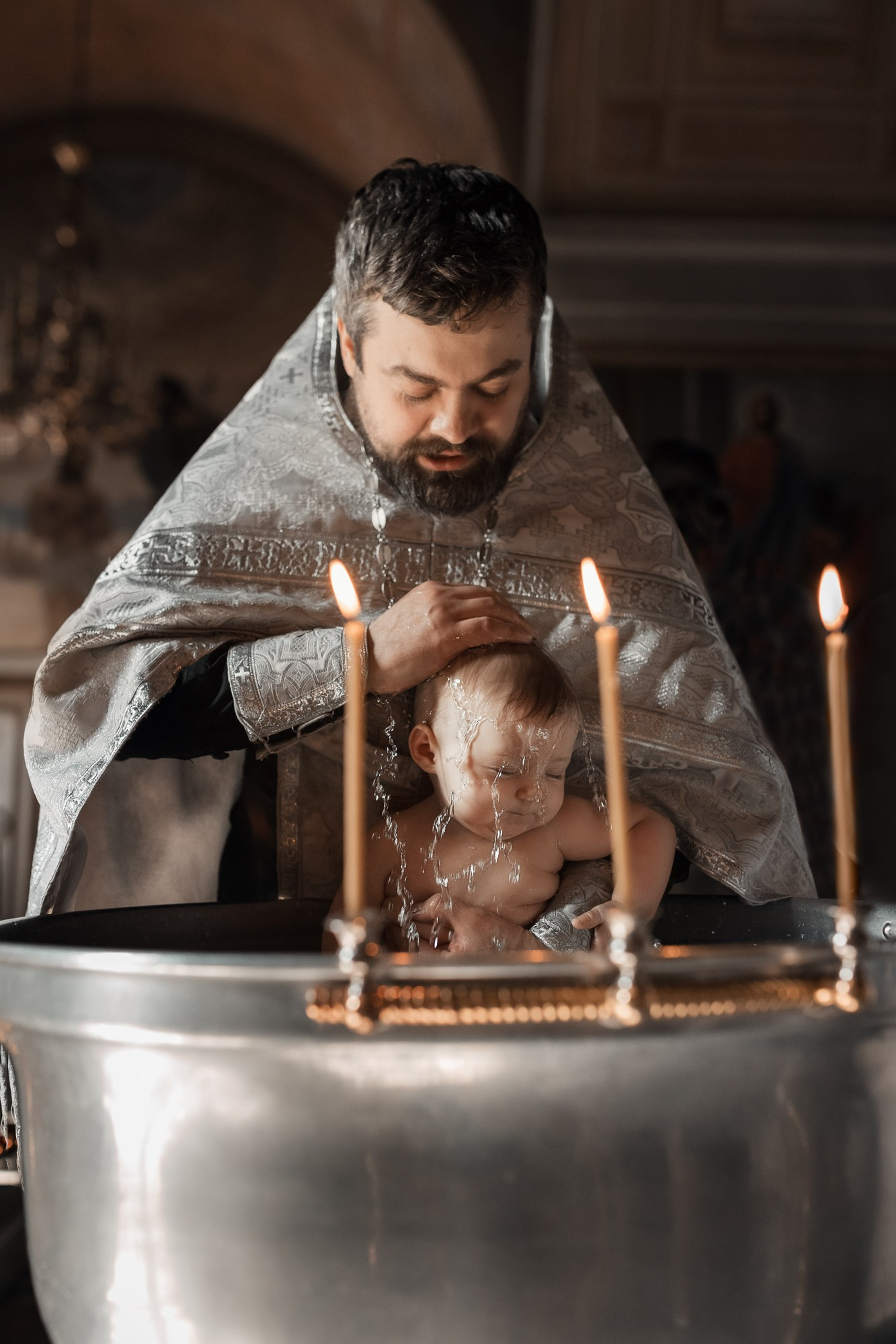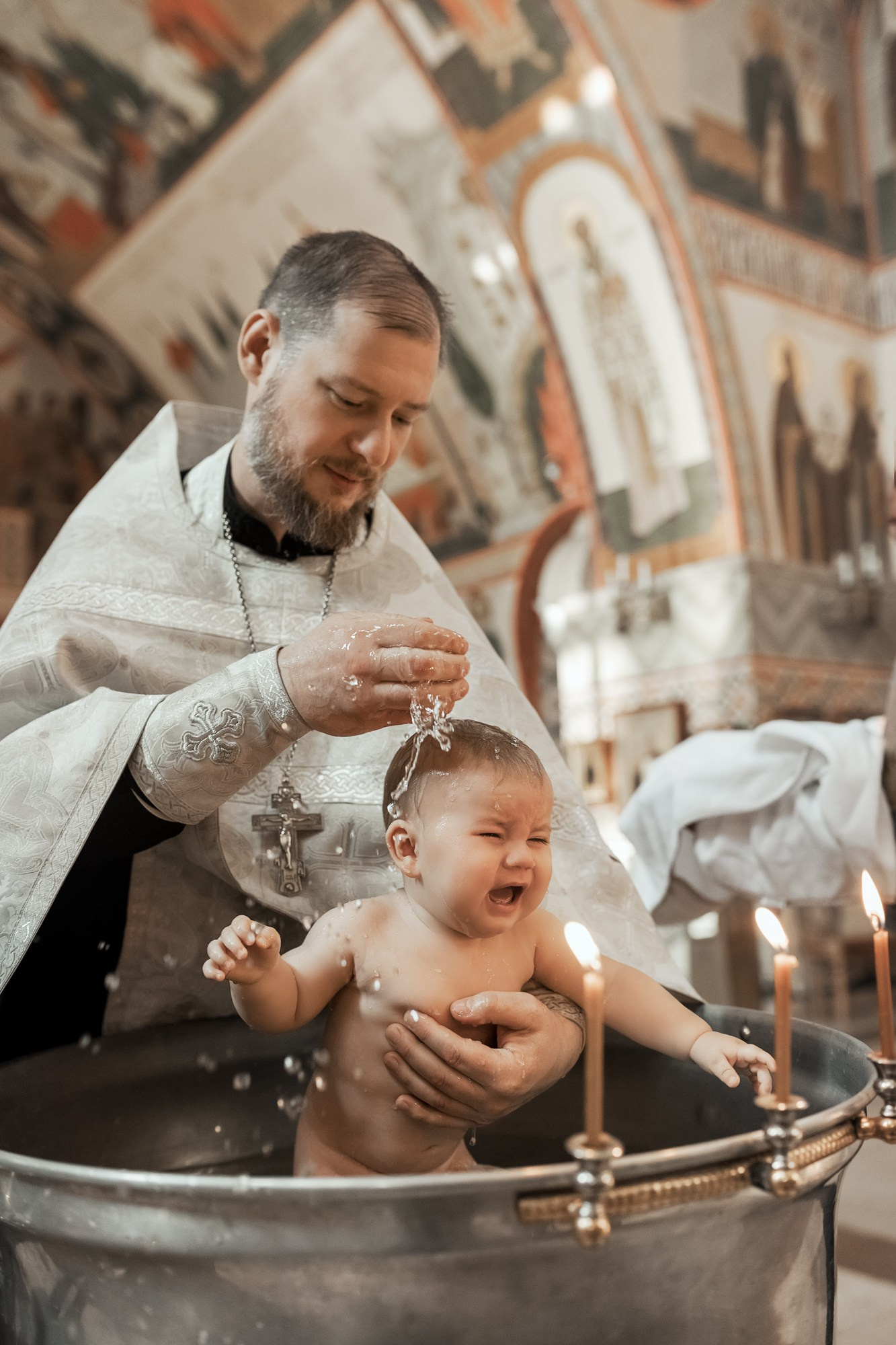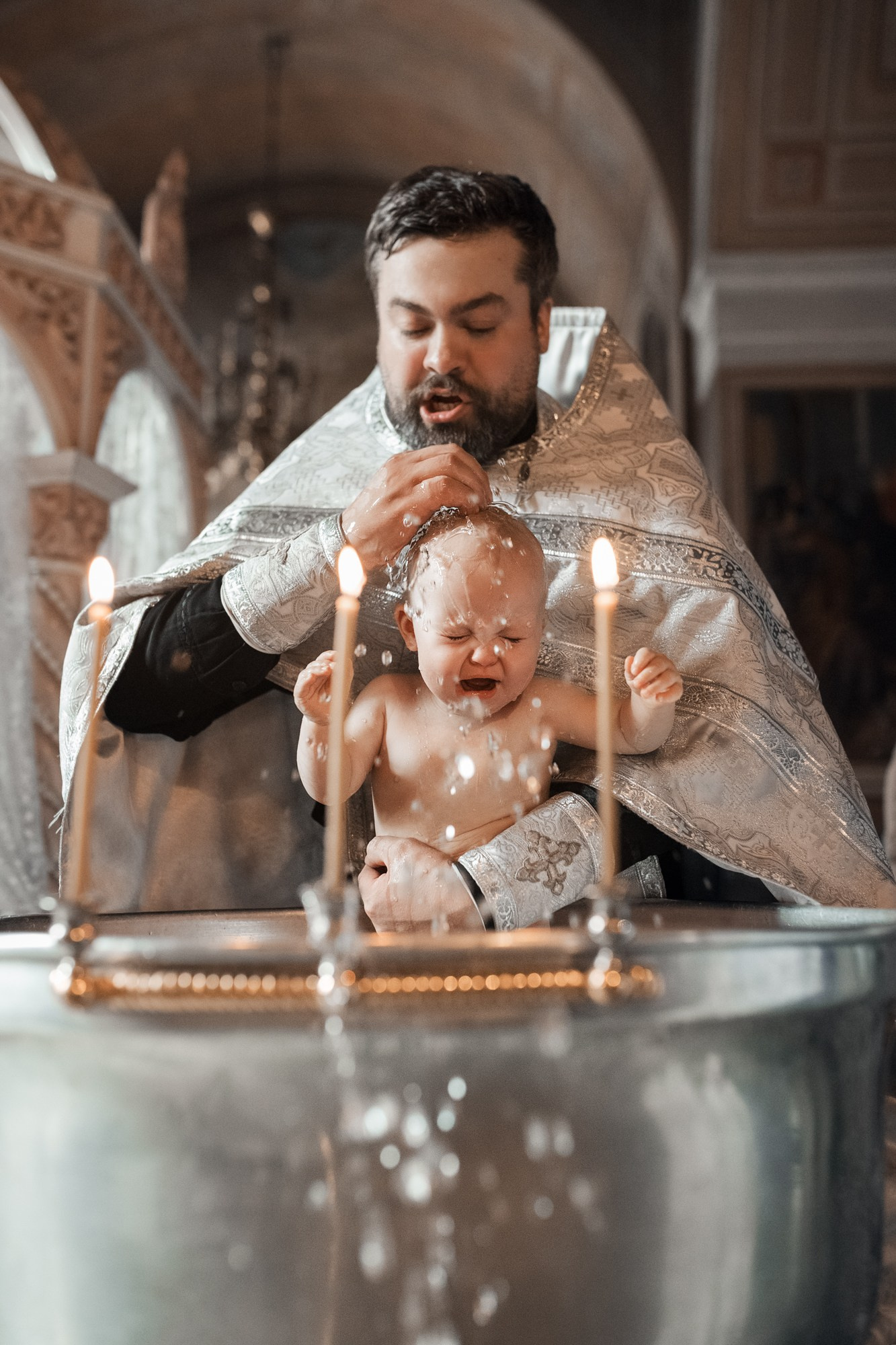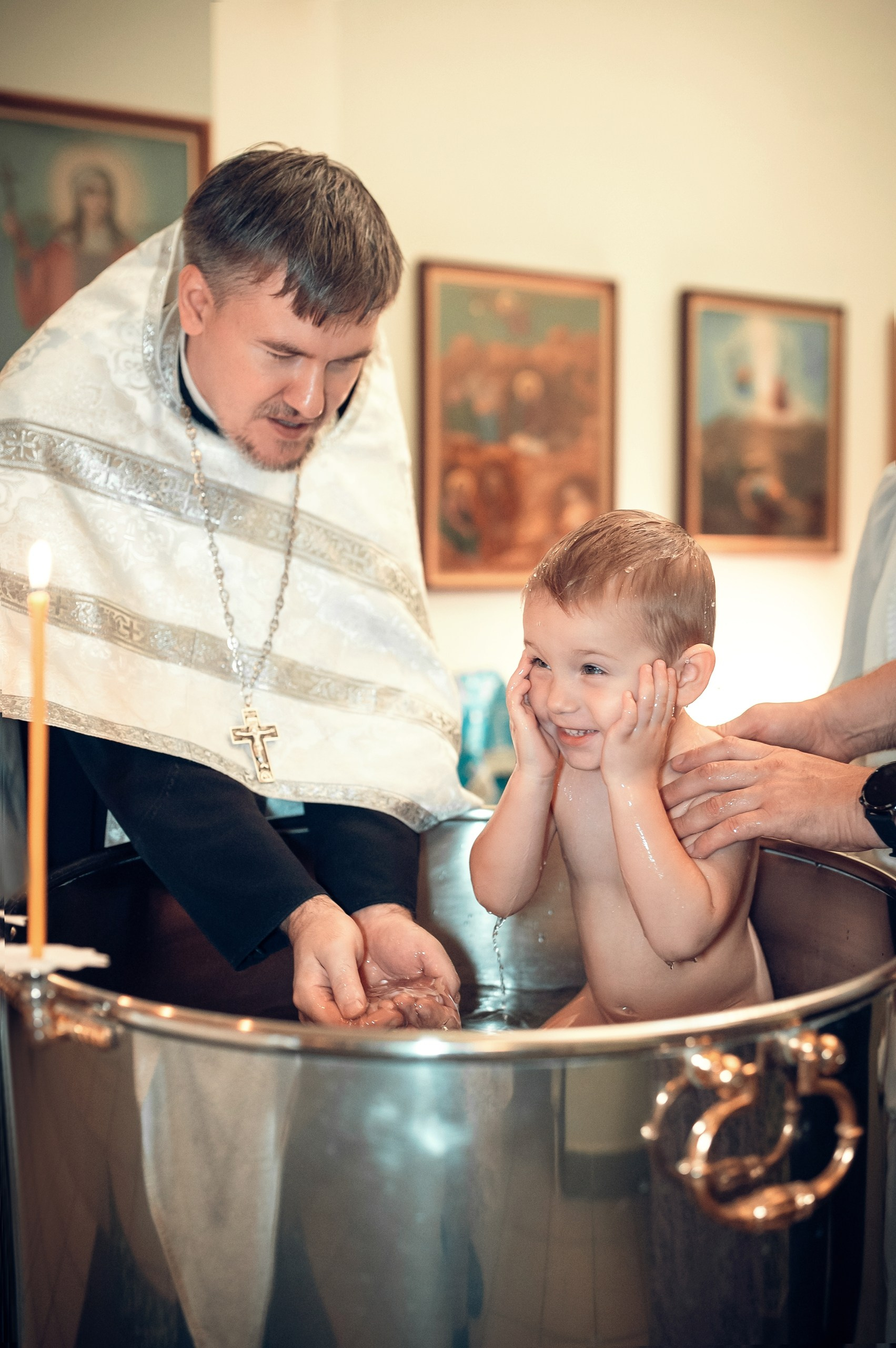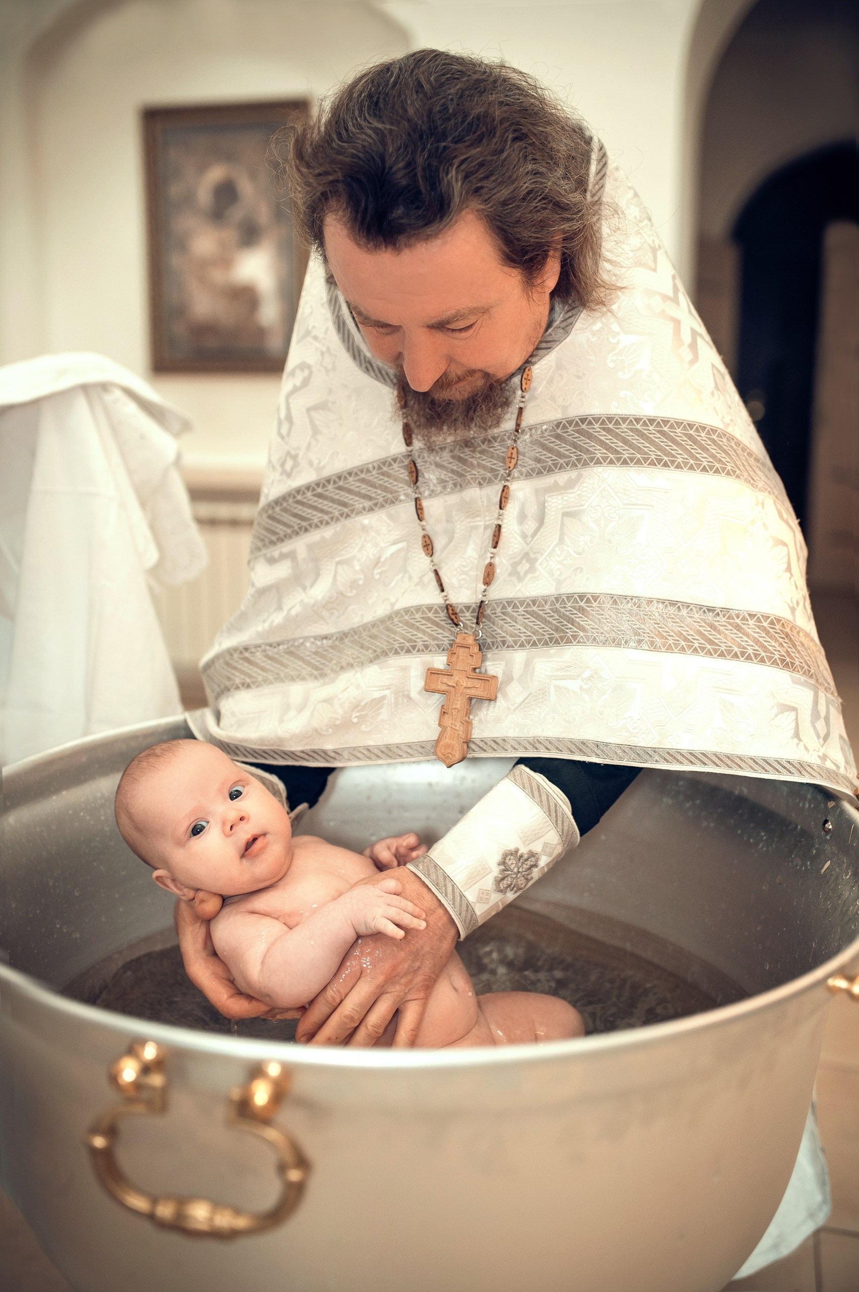 Фотографии момента погружения в купель (Таинство крещения). Moscow_CPC