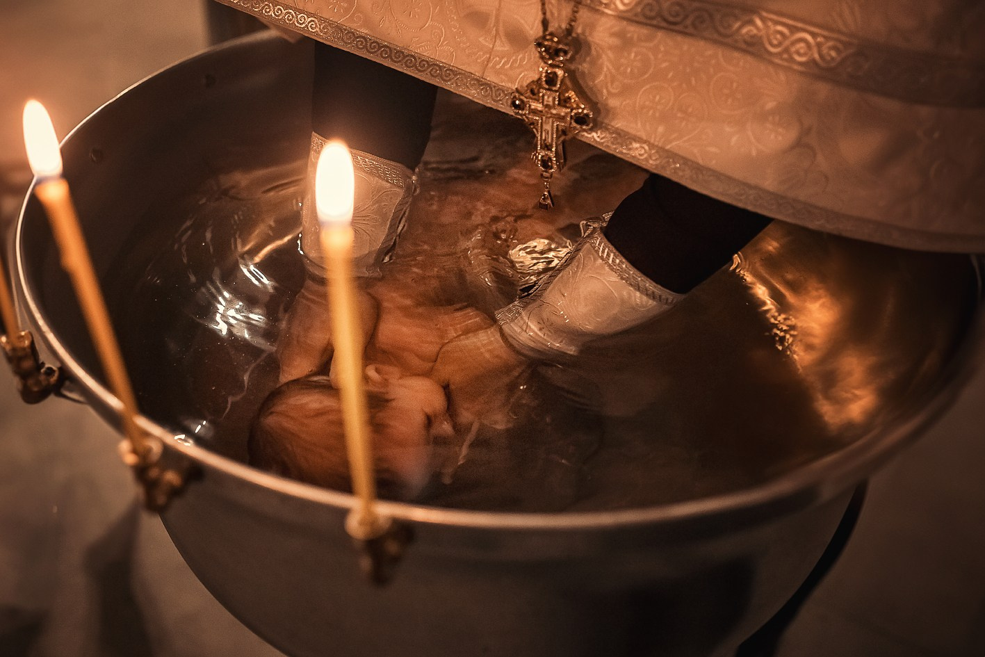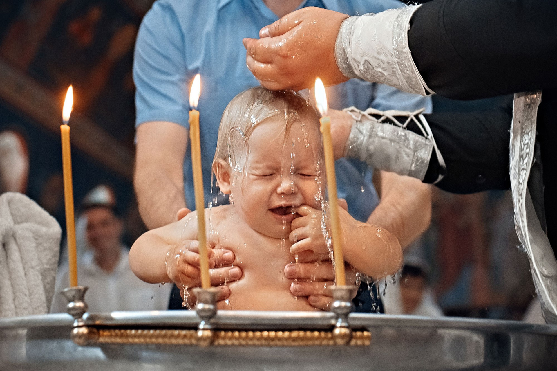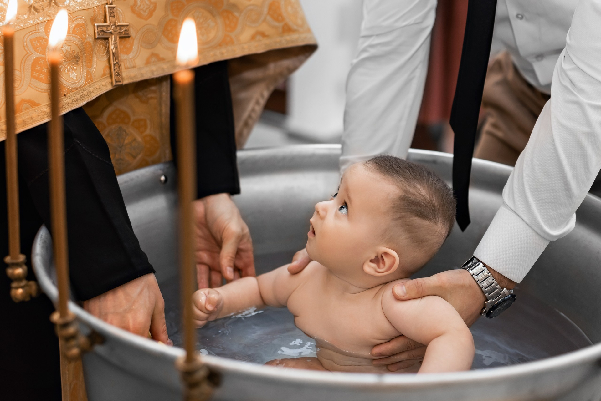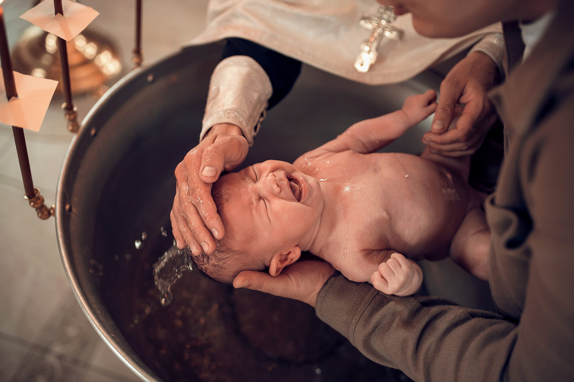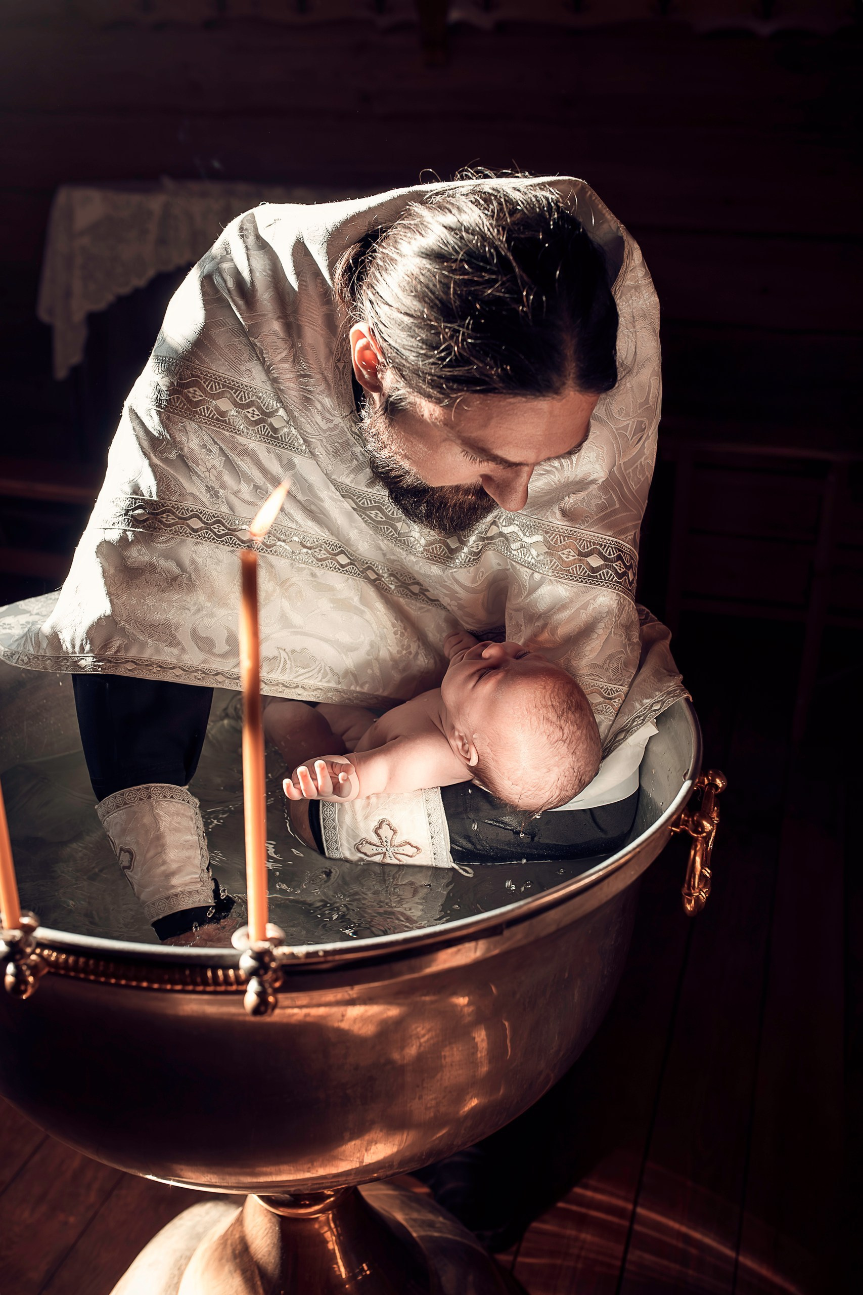 Фотографии момента погружения в купель (Таинство крещения). Moscow_CPC