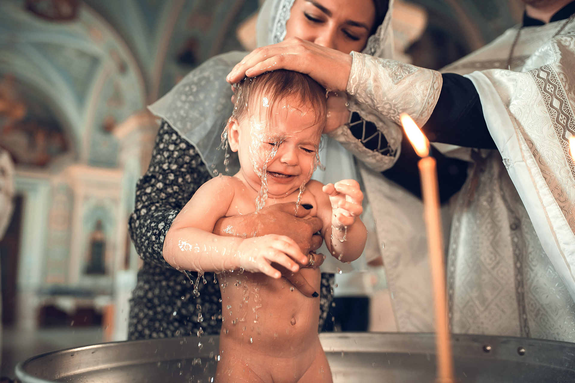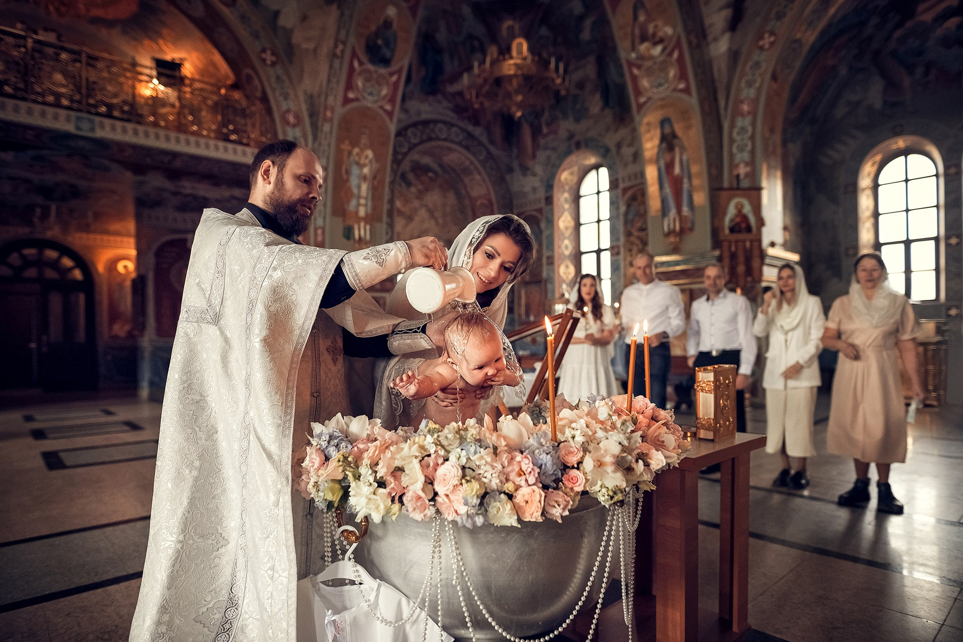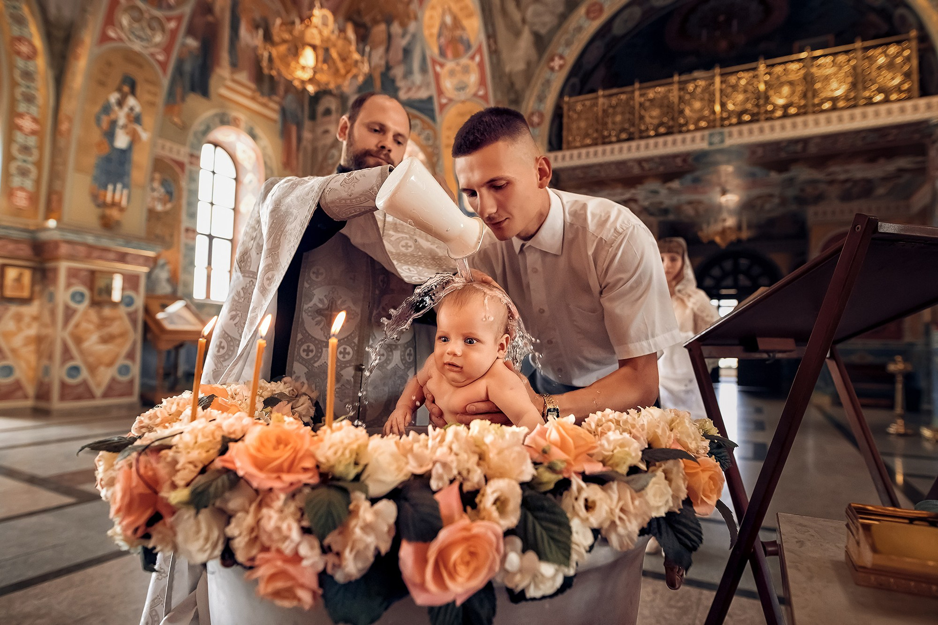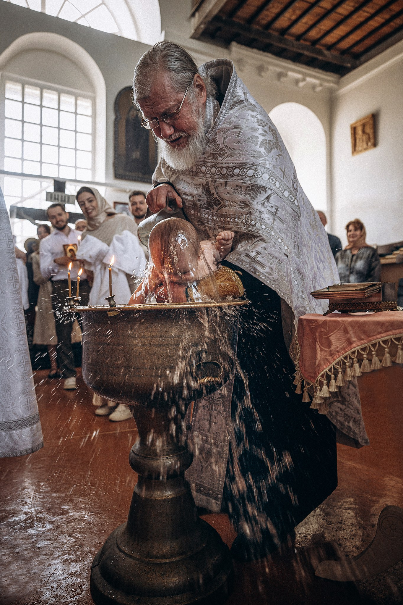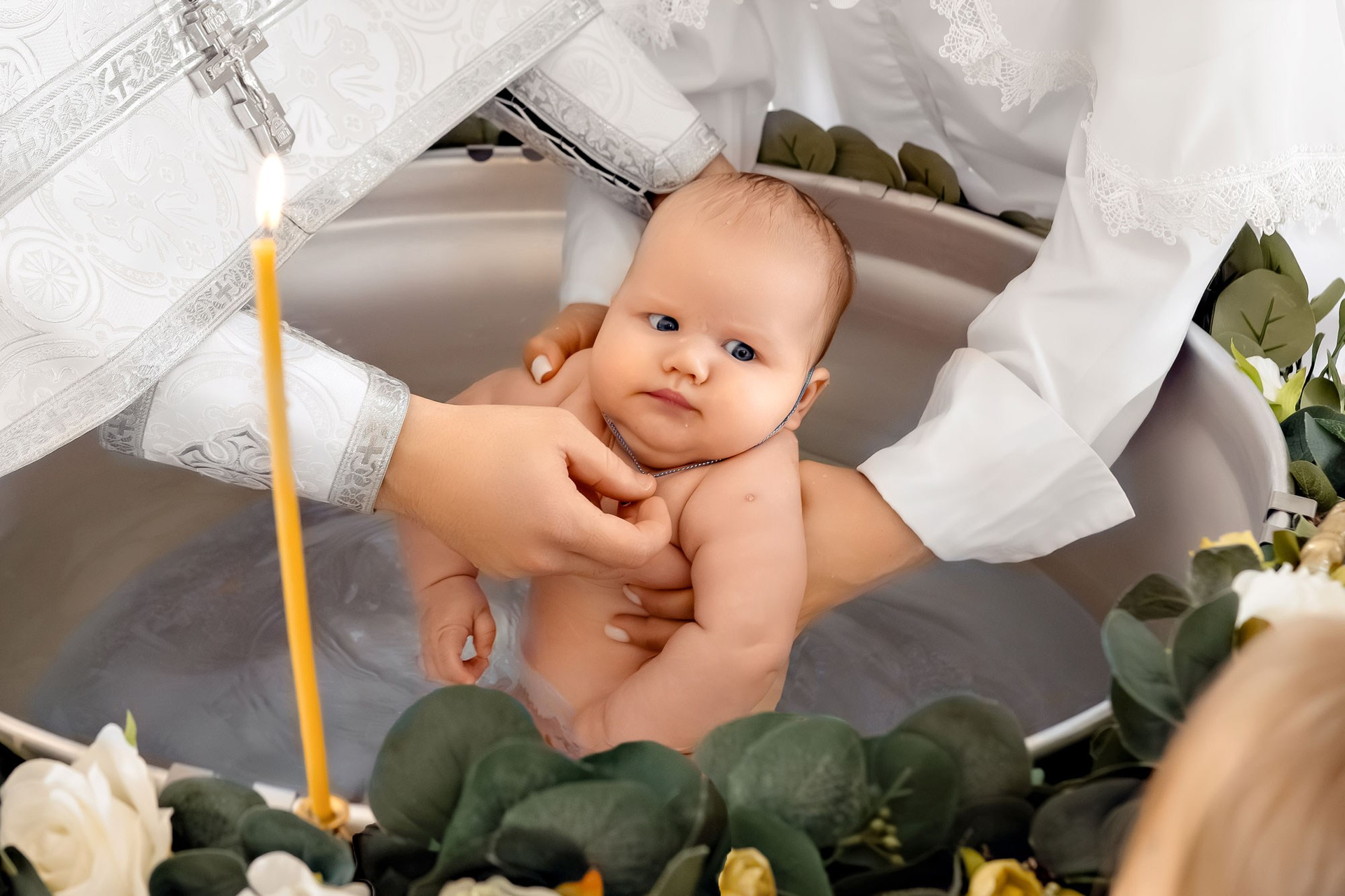 Фотографии момента погружения в купель (Таинство крещения). Moscow_CPC