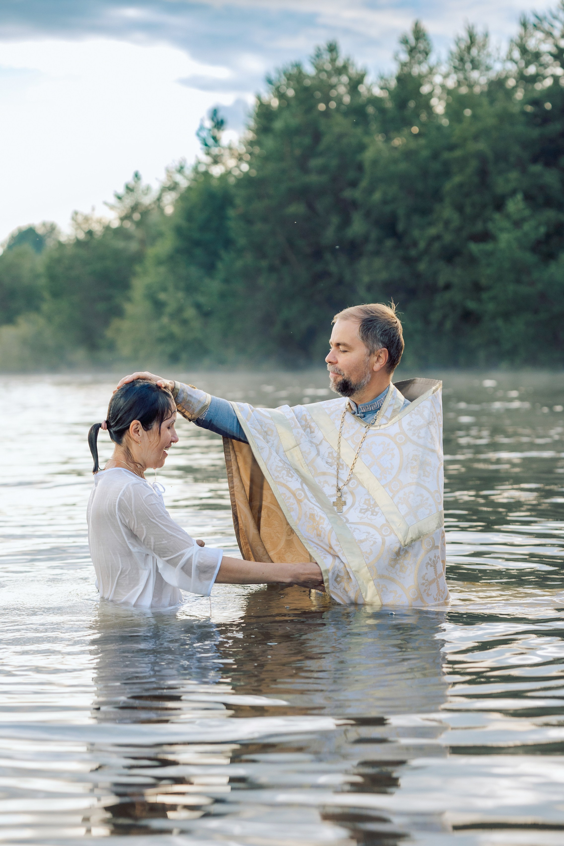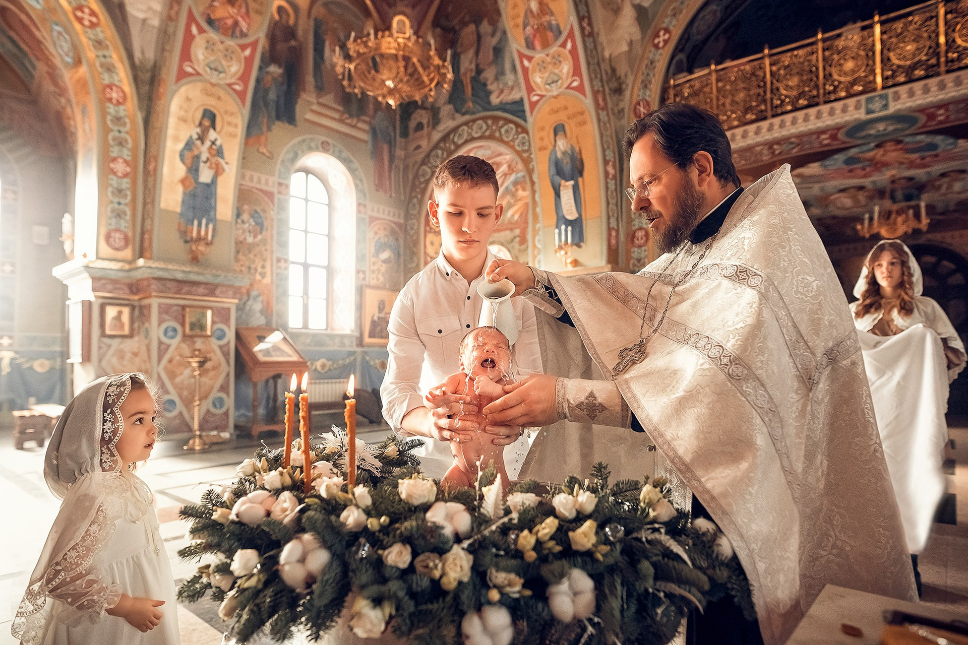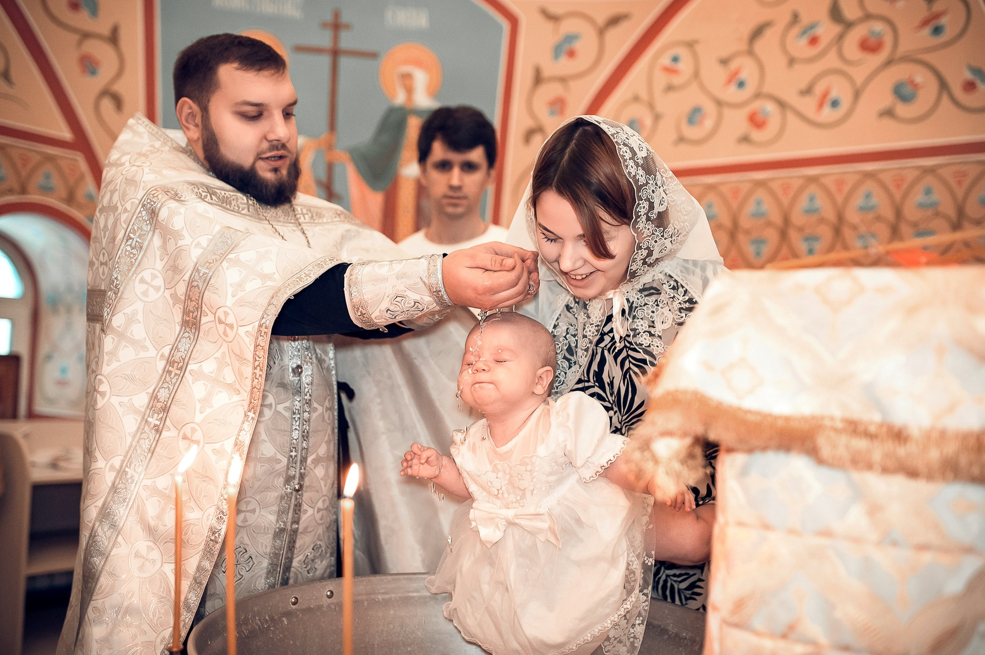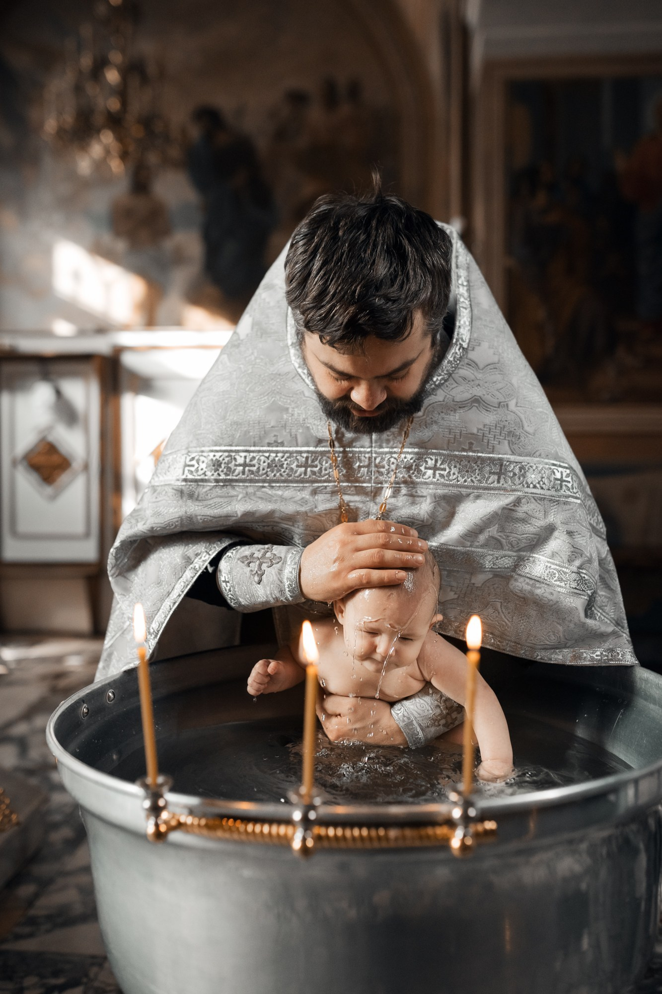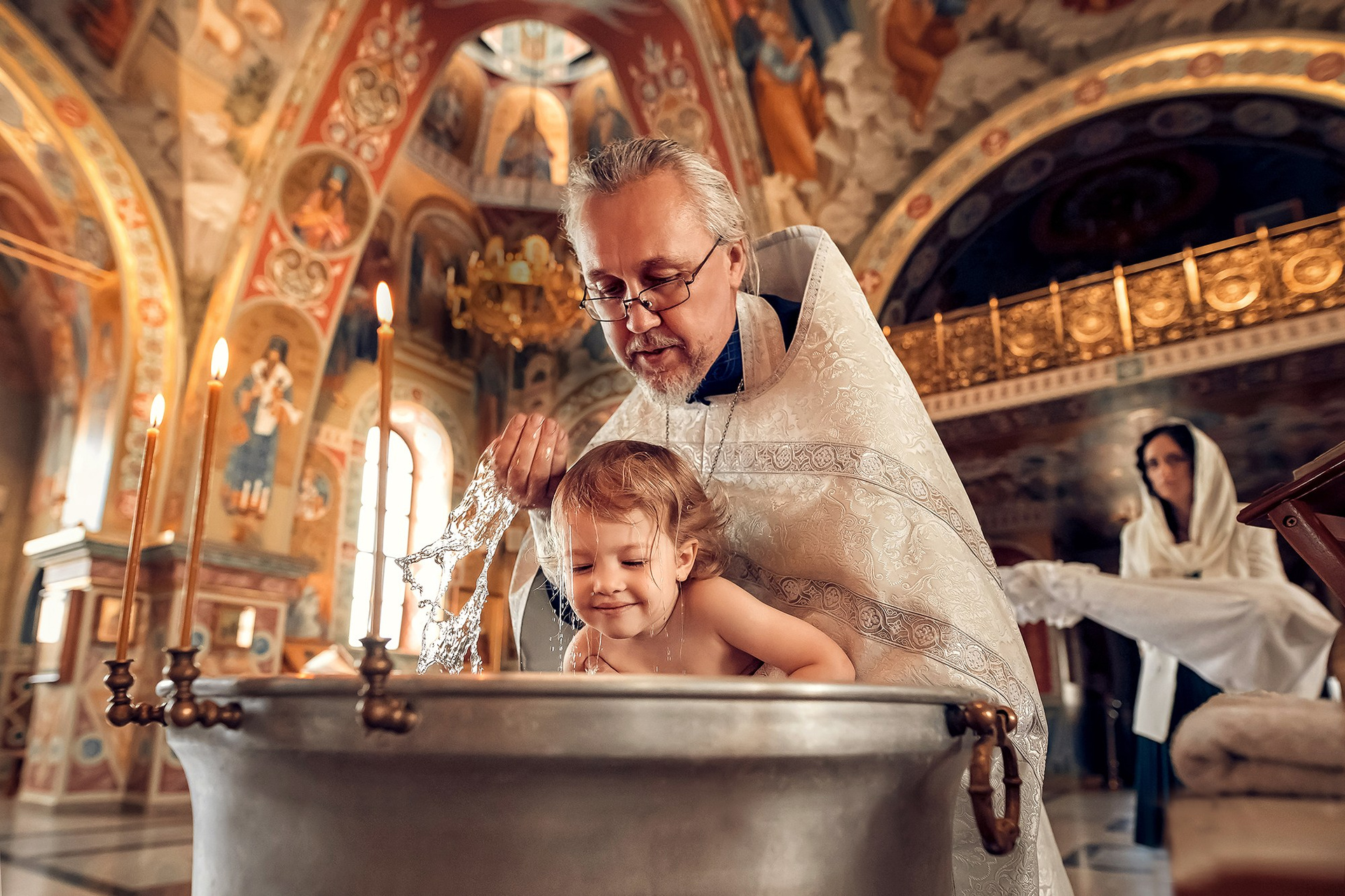 Фотографии момента погружения в купель (Таинство крещения). Moscow_CPC