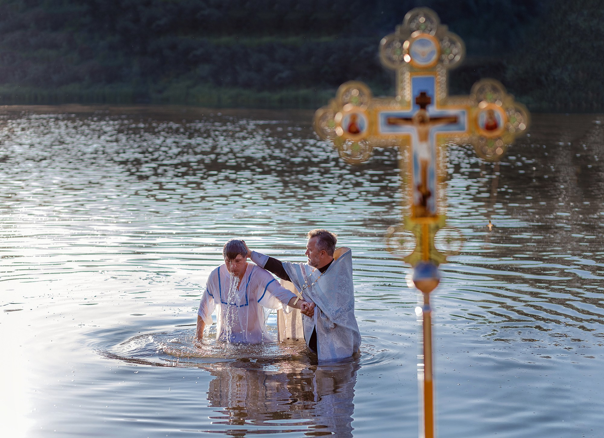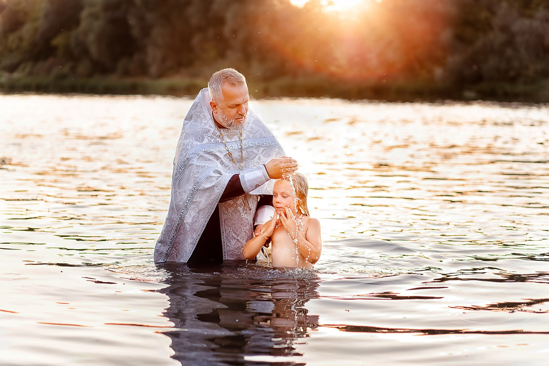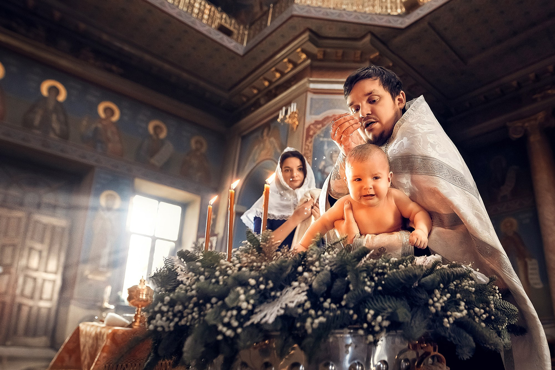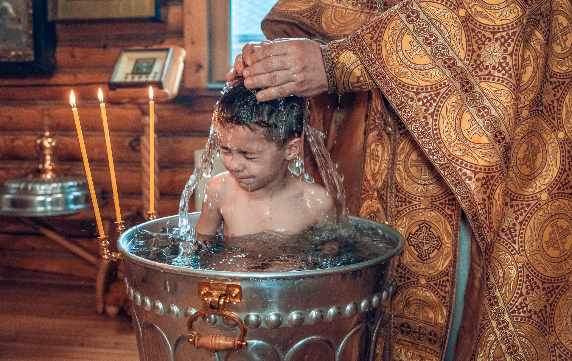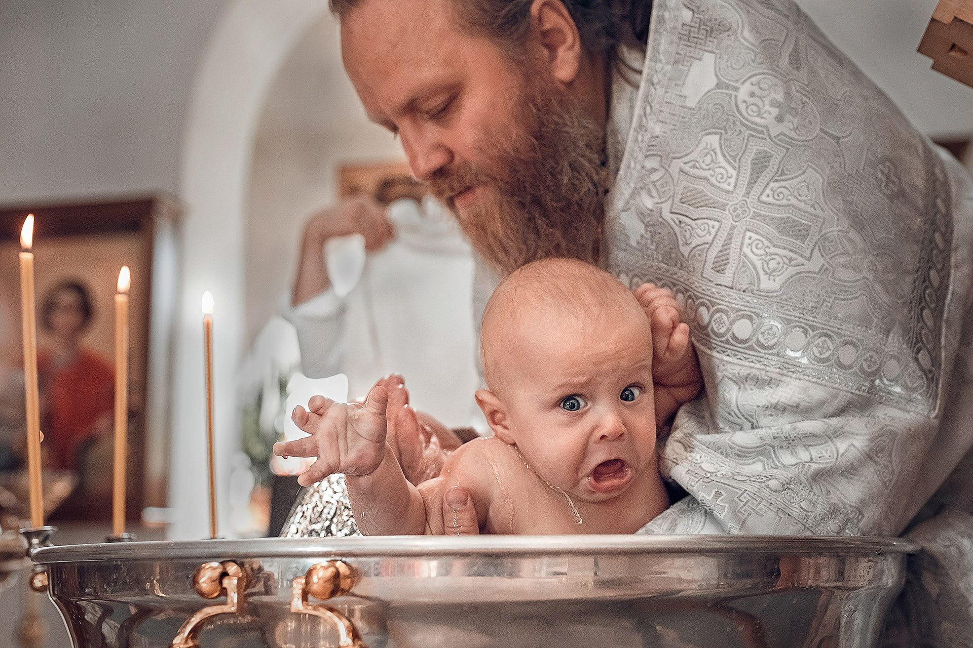 Фотографии момента погружения в купель (Таинство крещения). Moscow_CPC