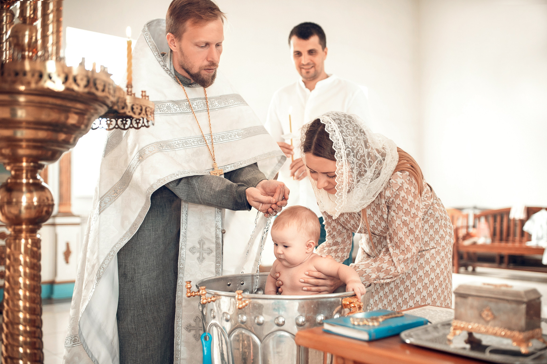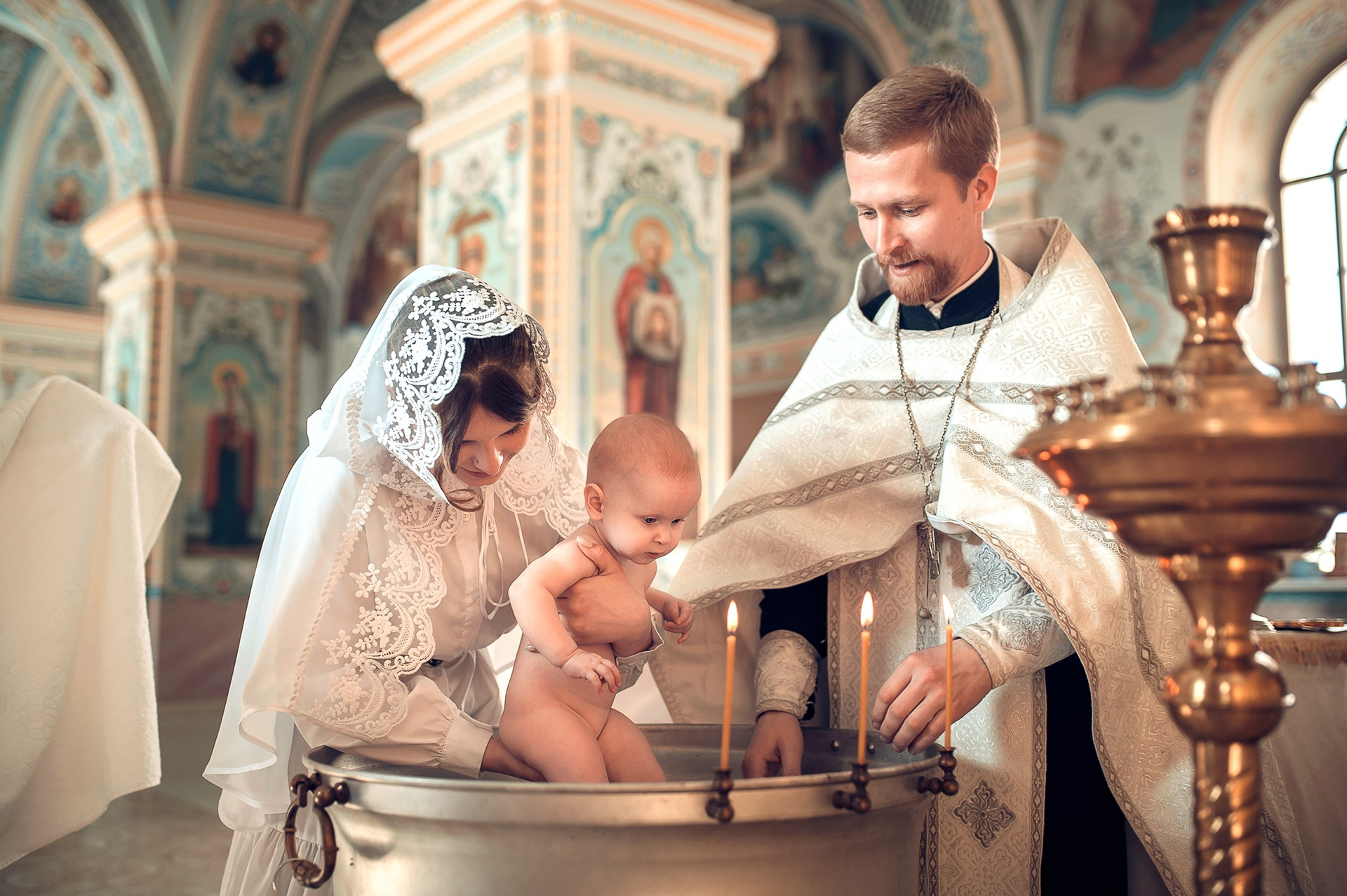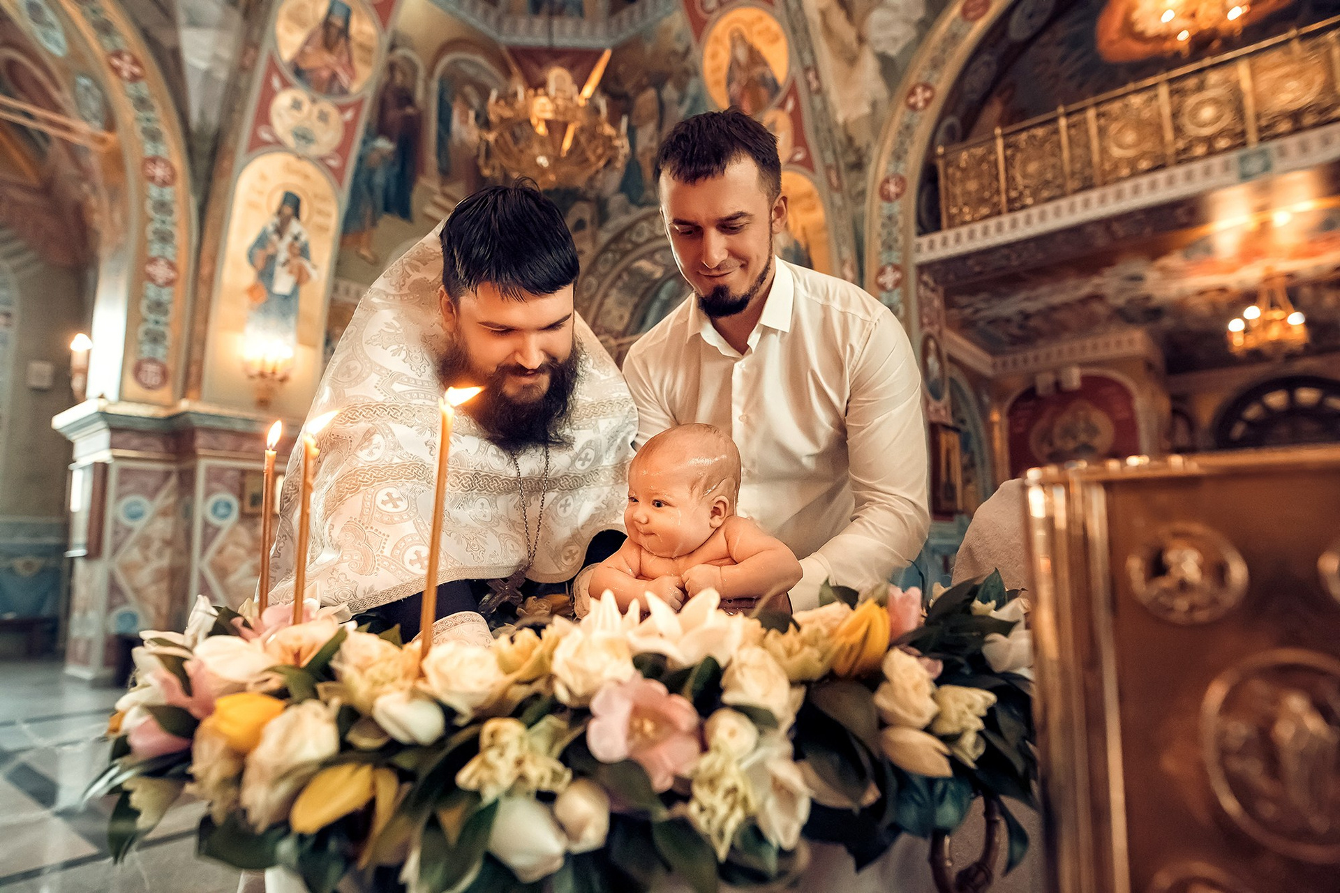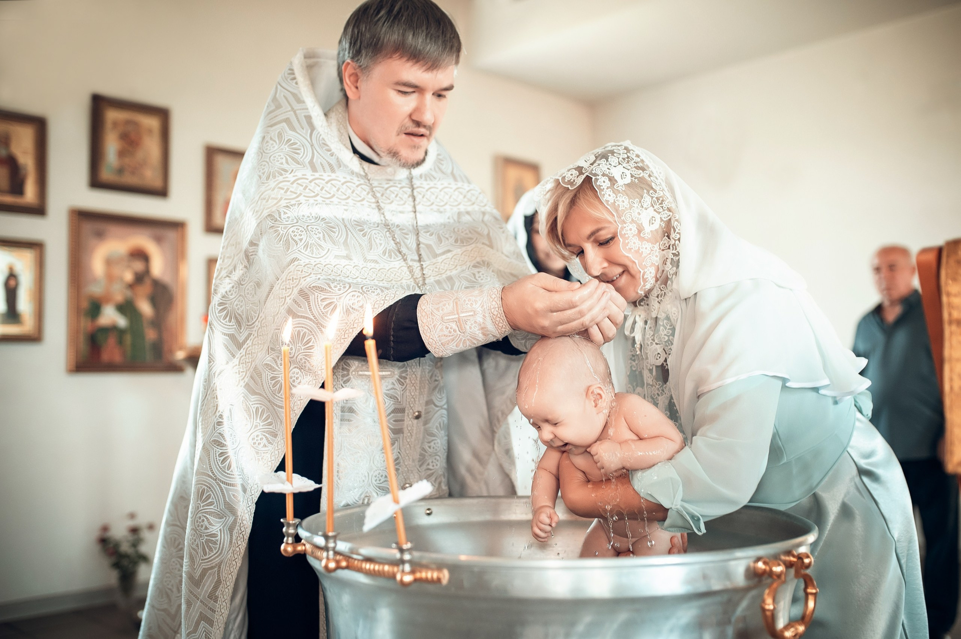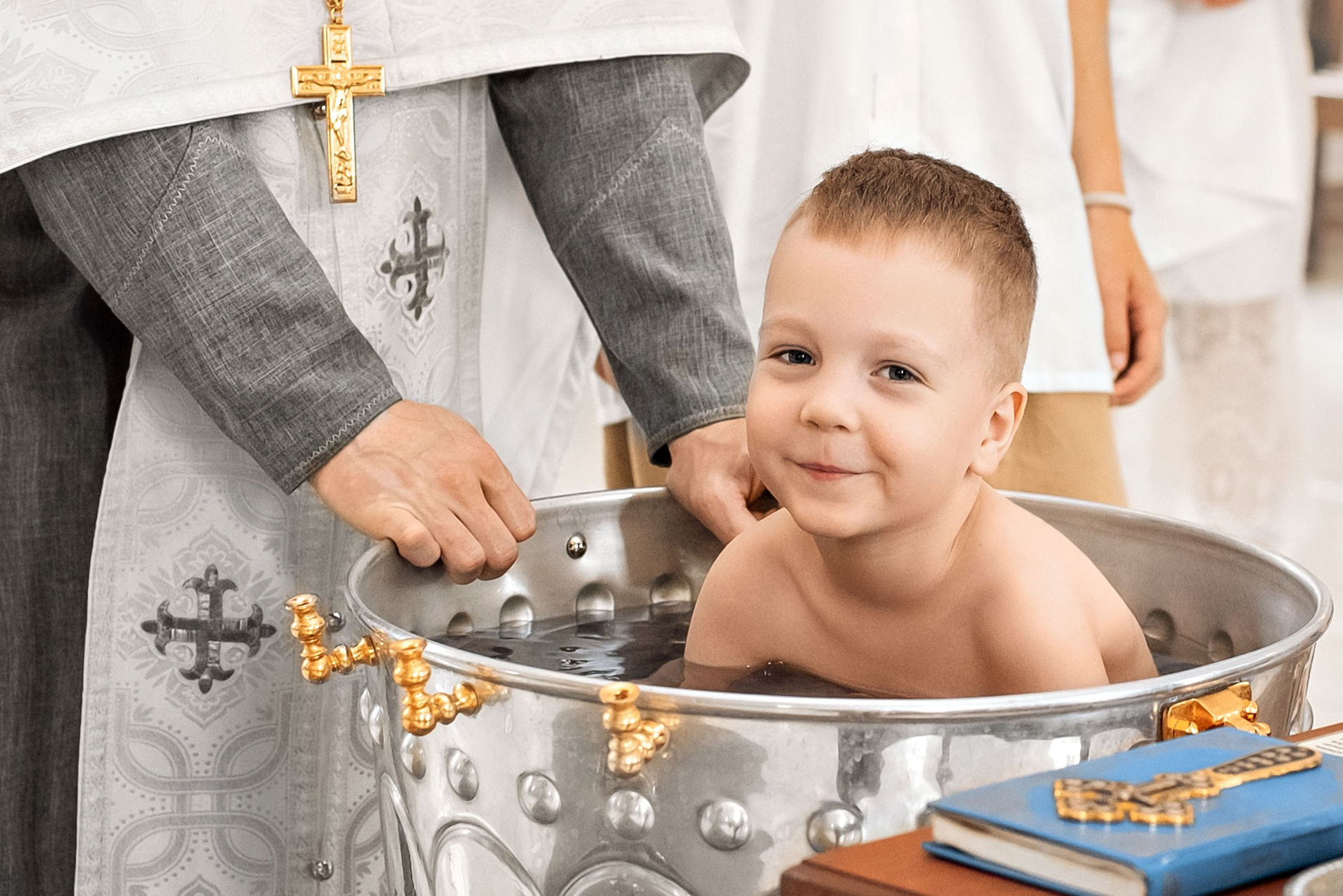 Фотографии момента погружения в купель (Таинство крещения). Moscow_CPC